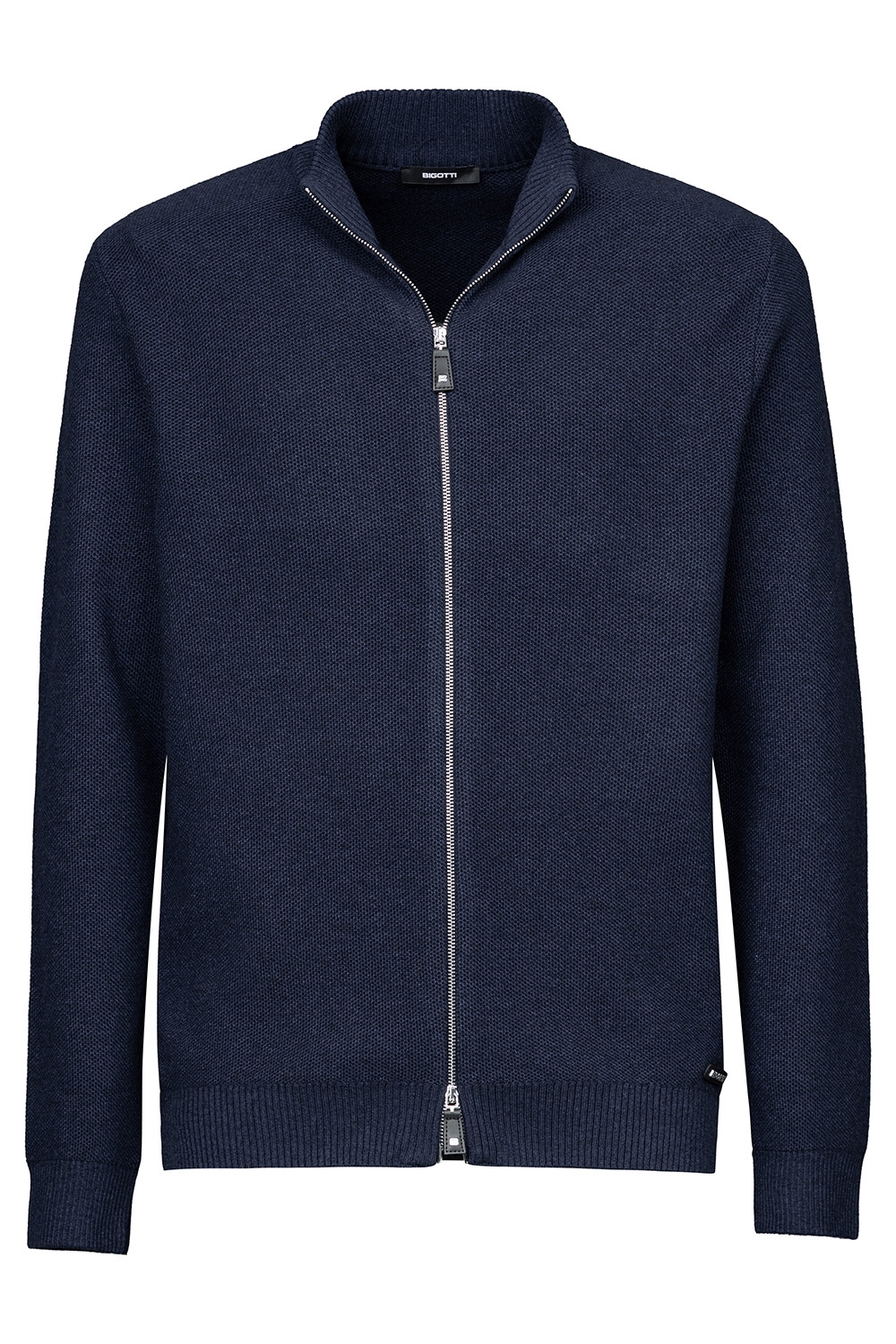Pulover regular bleumarin cu fermoar, din amestec cu casmir
