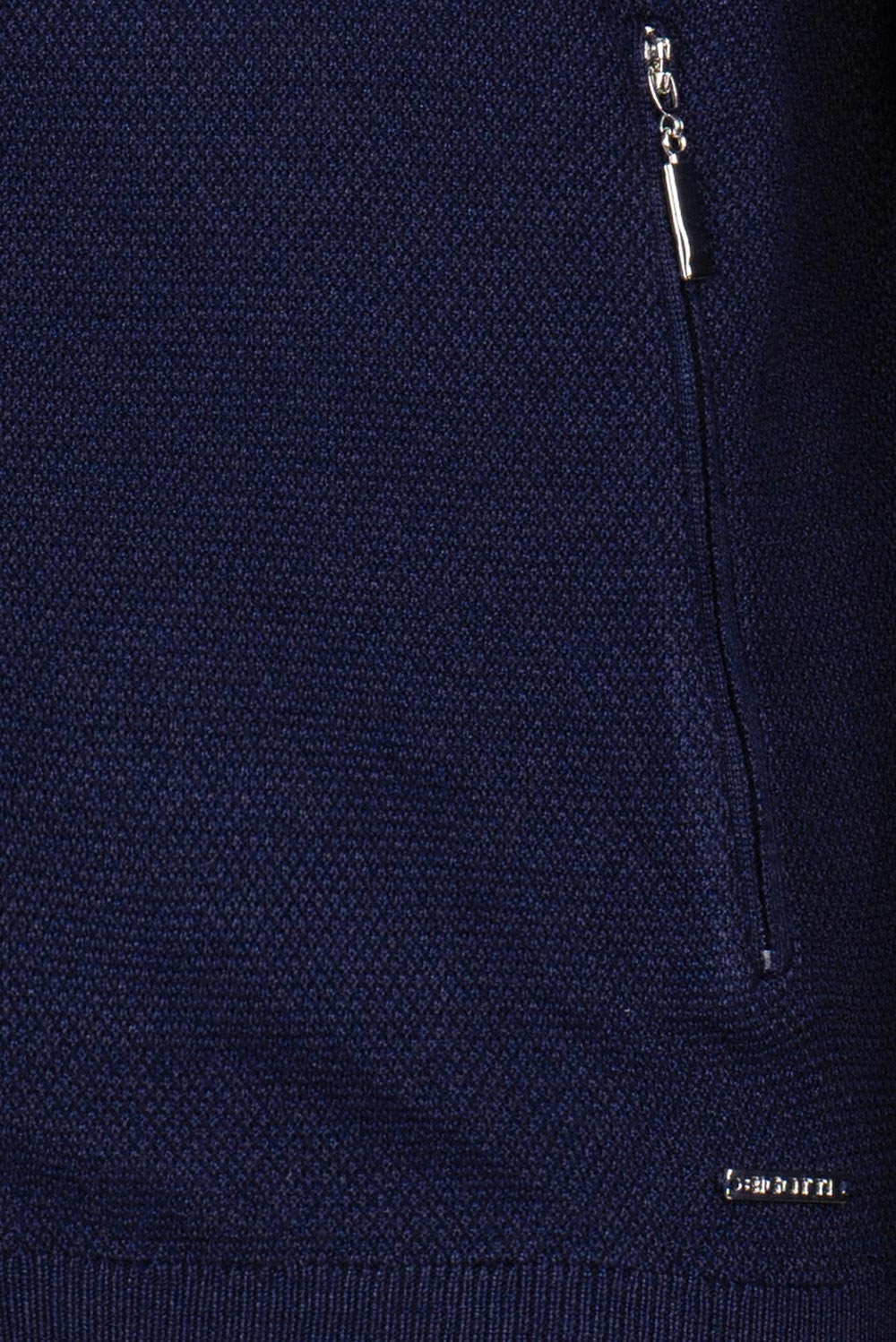 Pulover regular bleumarin cu fermoar din bumbac si amestec