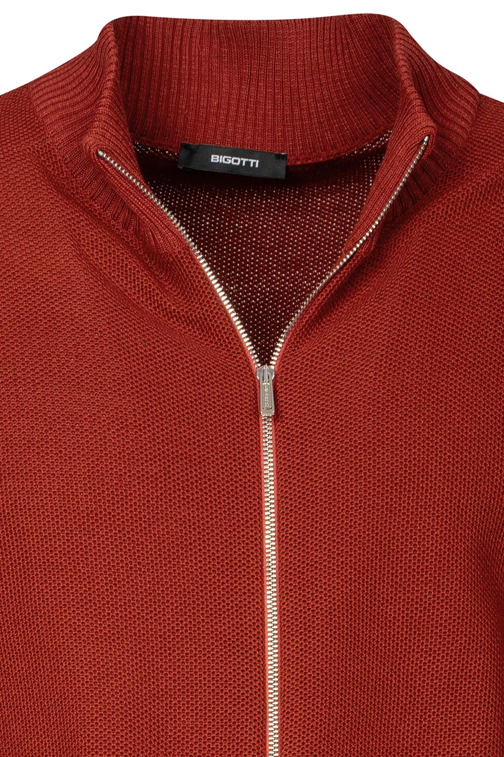 Pulover regular caramiziu cu fermoar din lana si acril