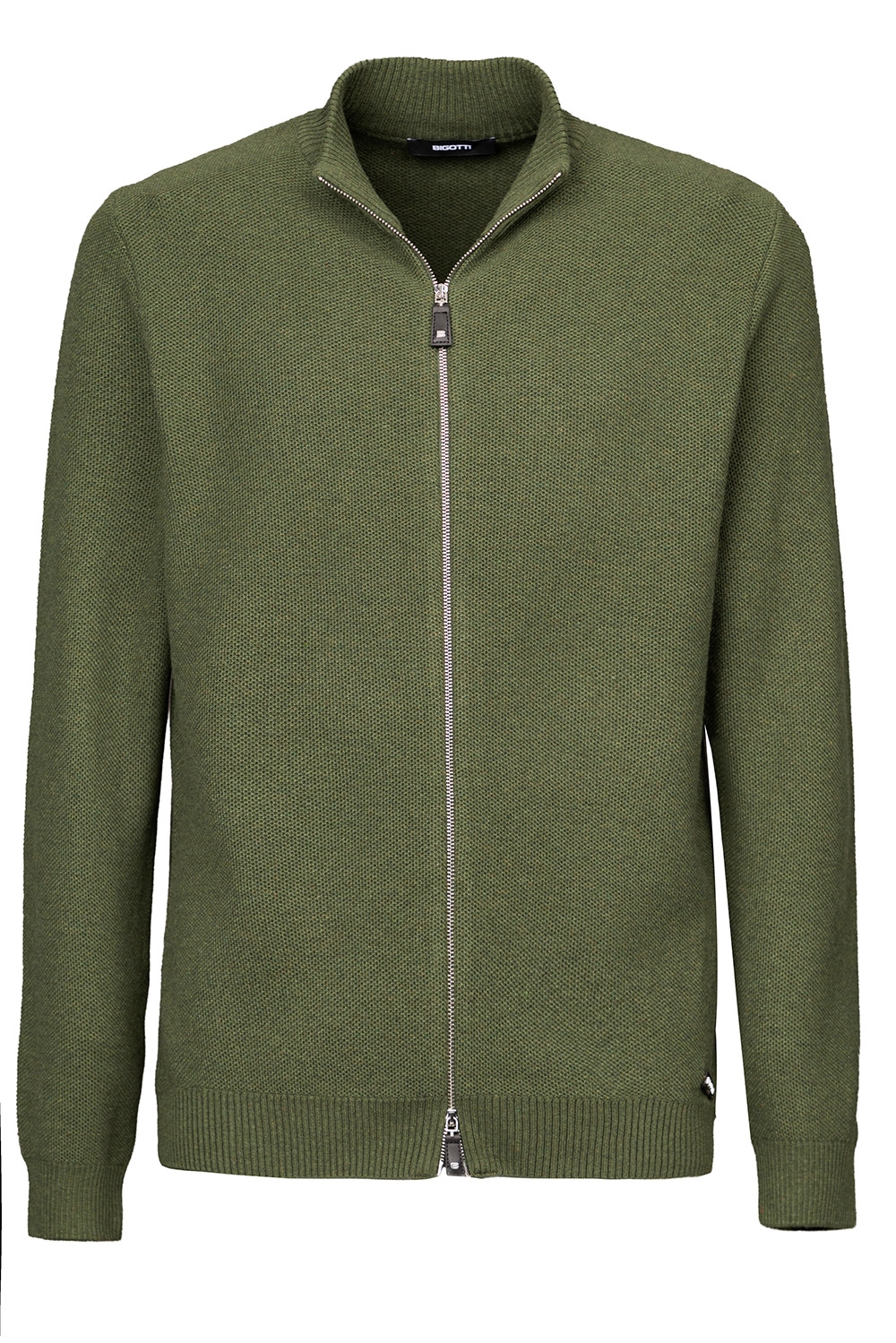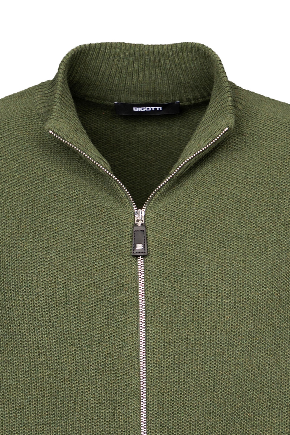 Pulover regular kaki cu fermoar, din amestec cu casmir