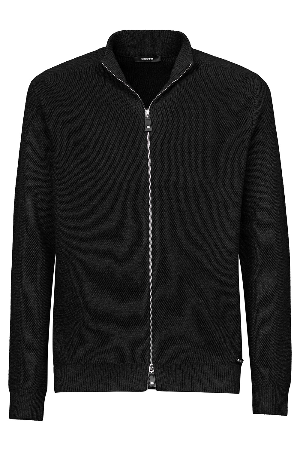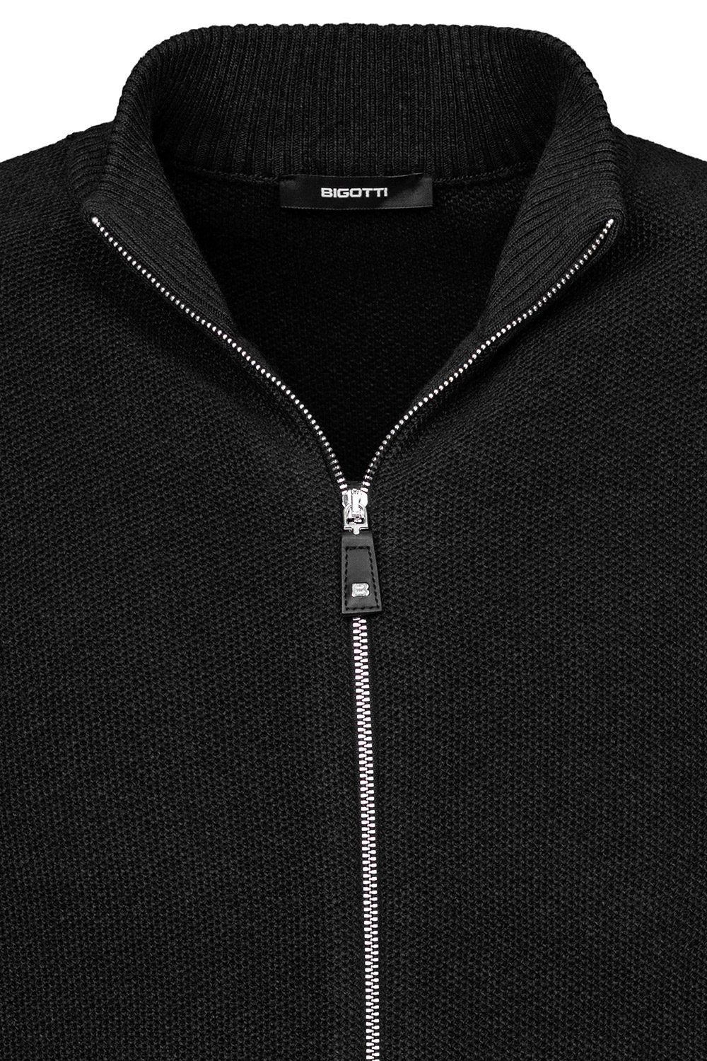 Pulover regular negru cu fermoar, din amestec cu casmir
