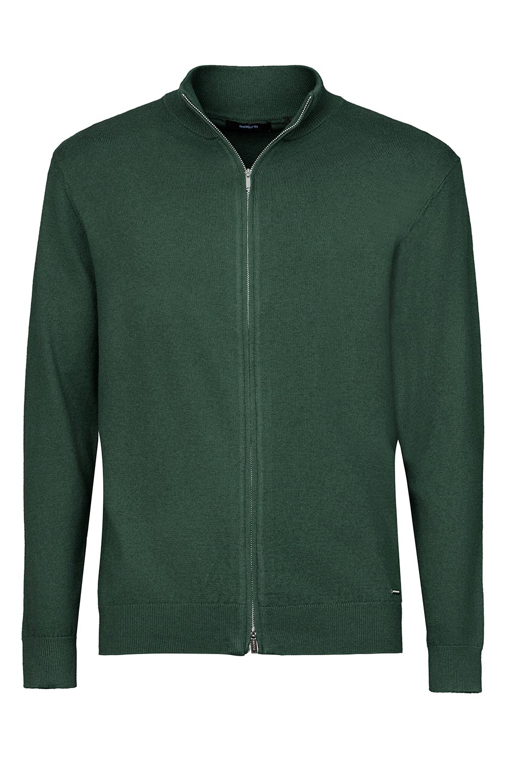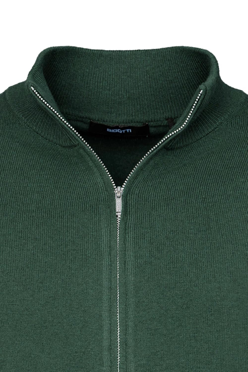 Pulover regular verde cu fermoar din lana si bumbac