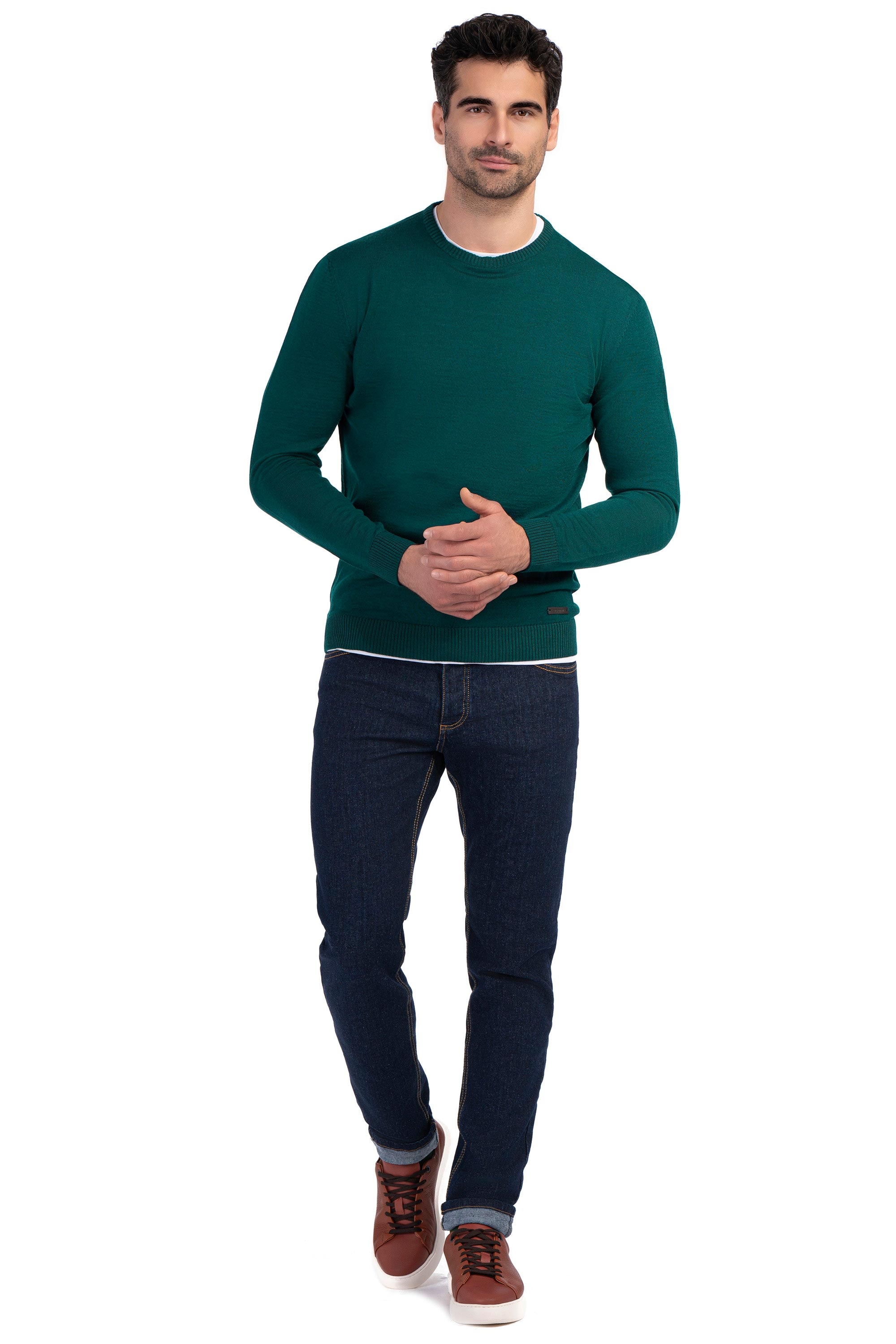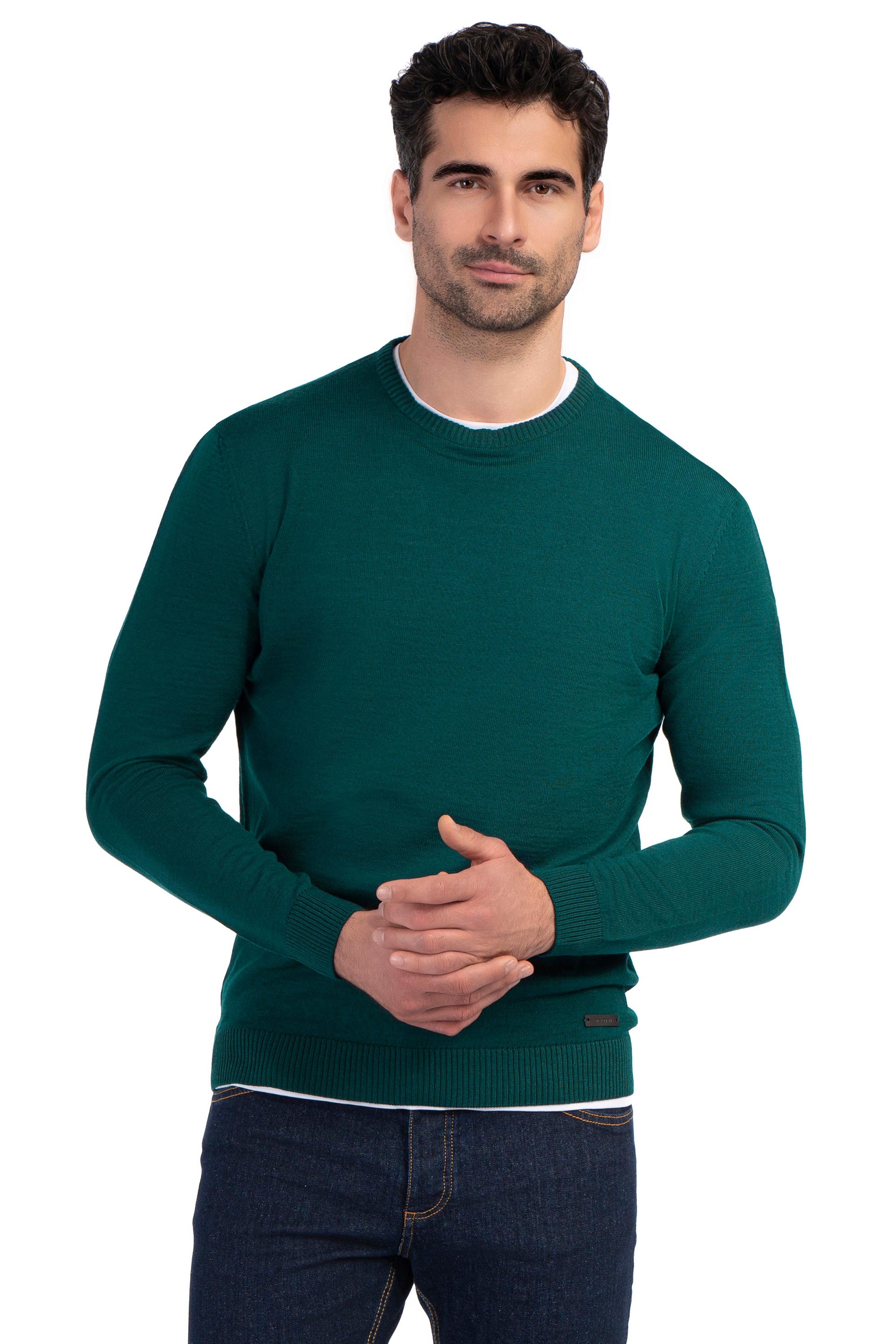 Pulover regular verde guler rotund 1