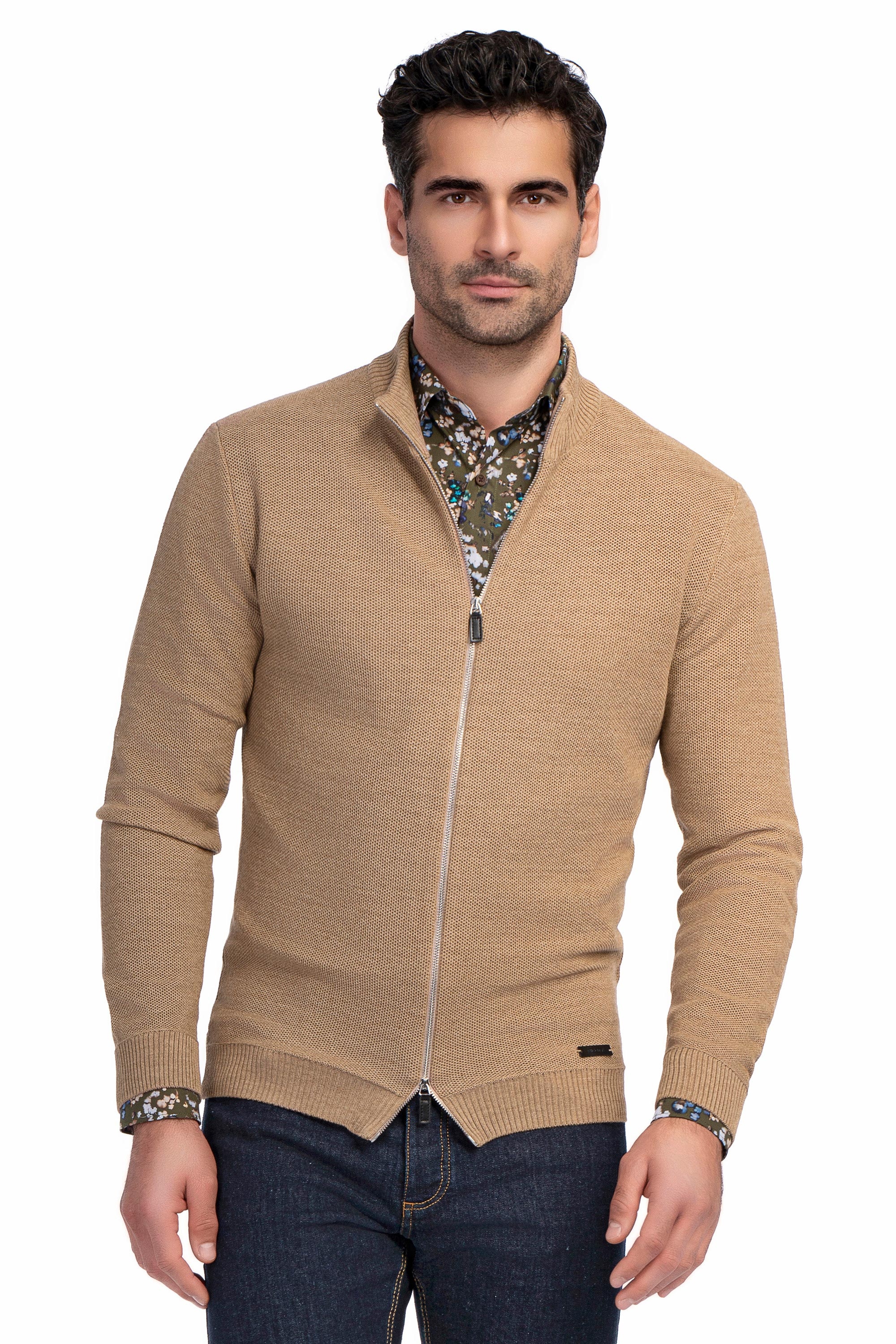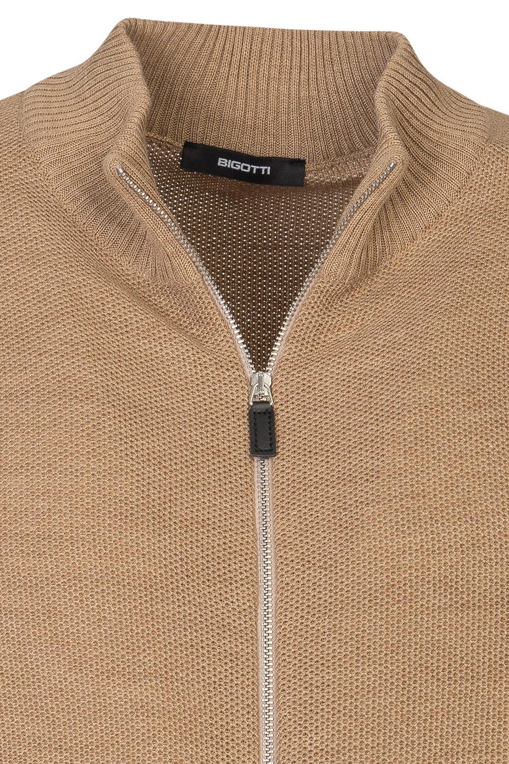 Pulover slim bej cu fermoar 1