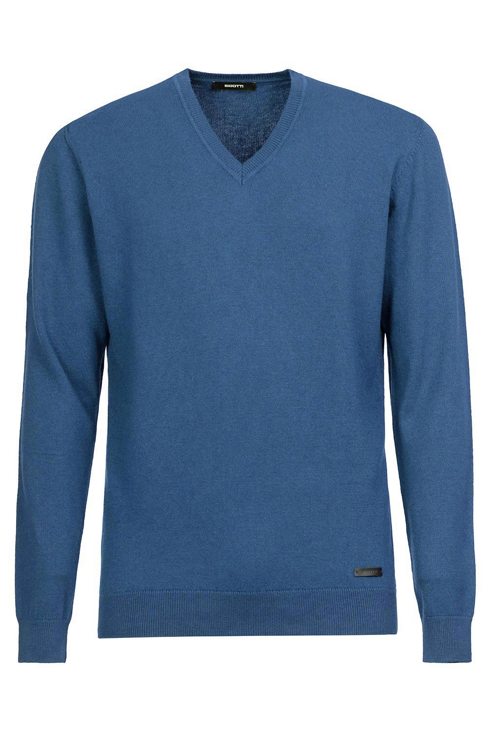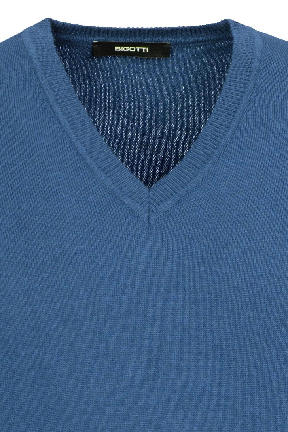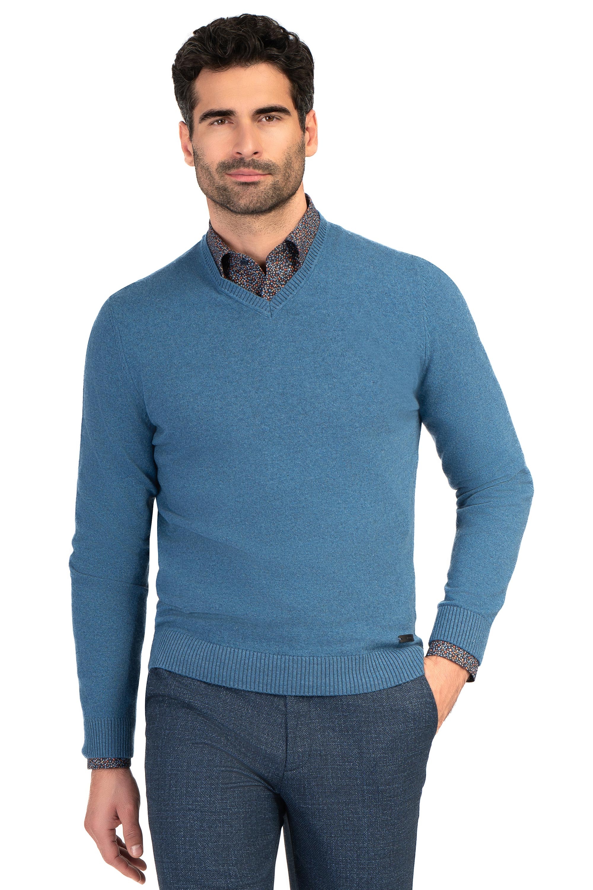 Pulover slim bleu guler in v 0