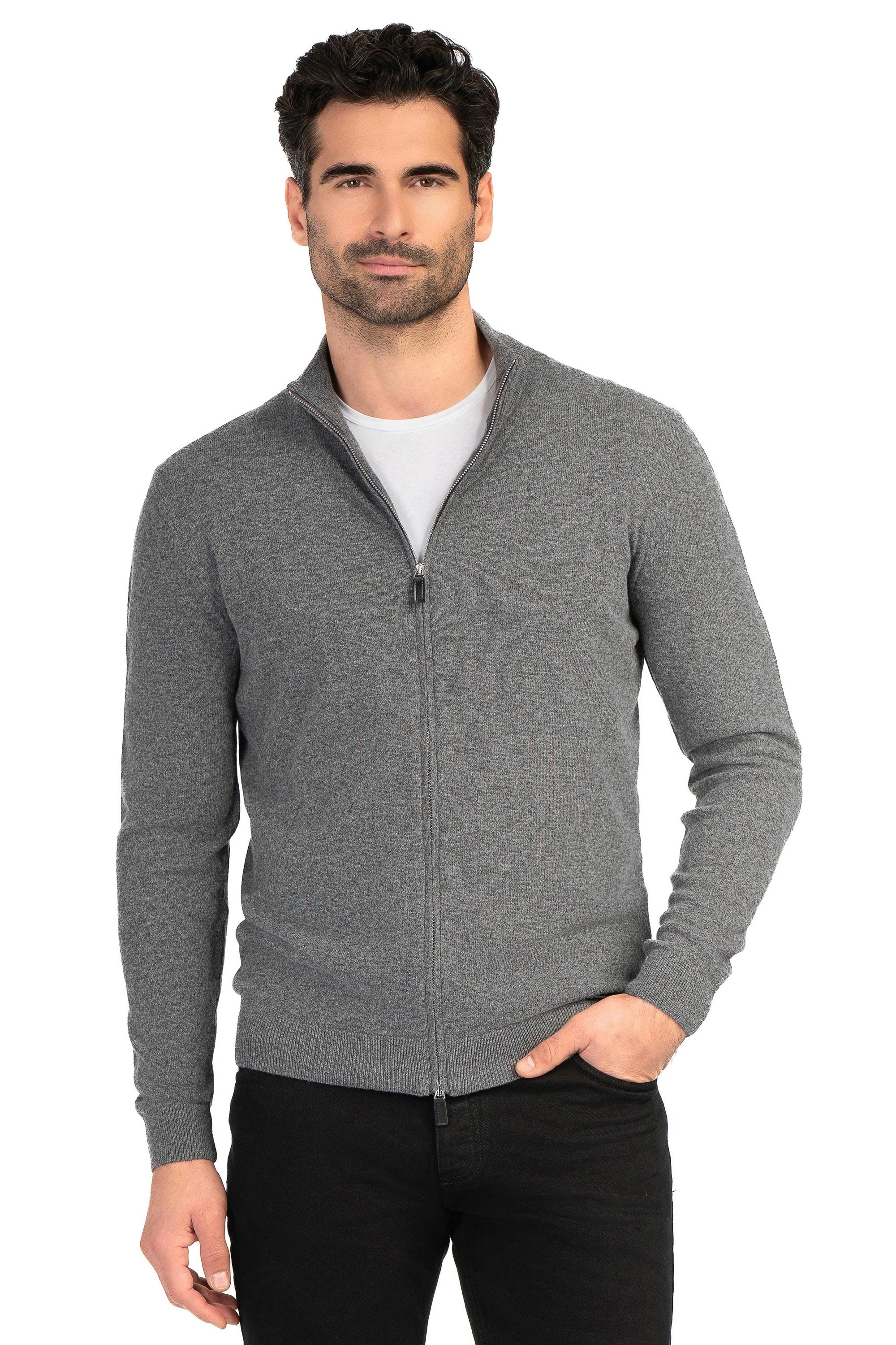 Pulover slim gri cu fermoar 1