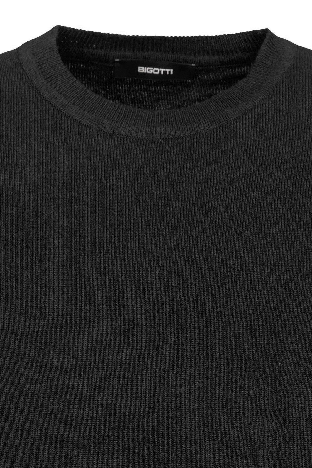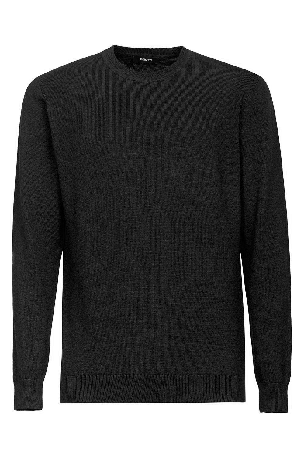 Pulover slim negru guler rotund din bumbac si amestec