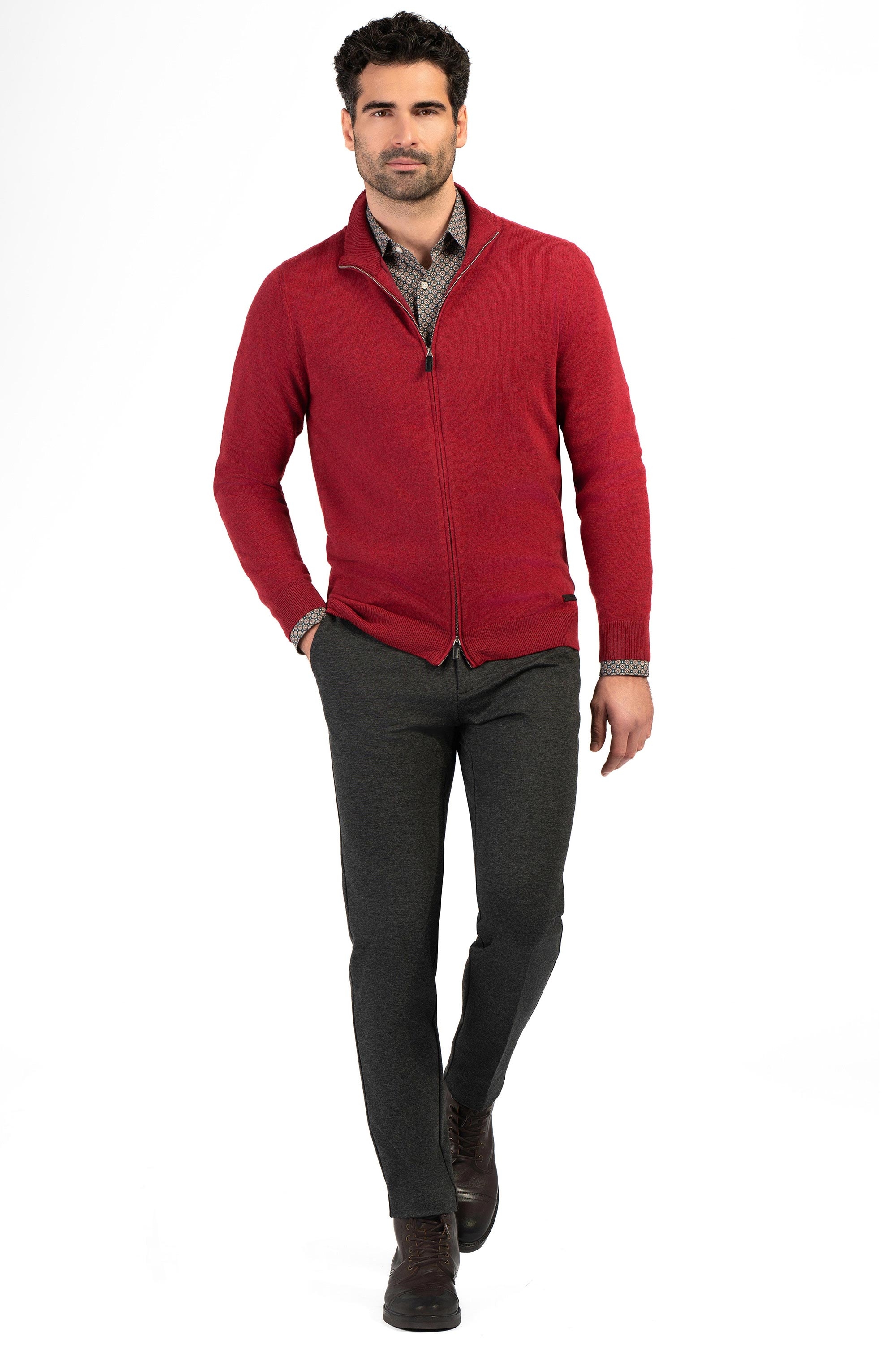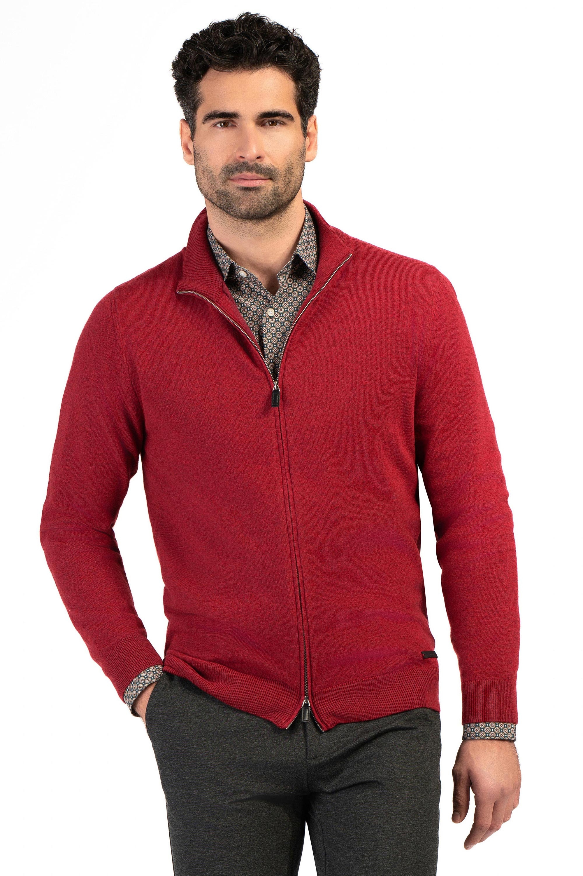 Pulover slim rosu cu fermoar 1