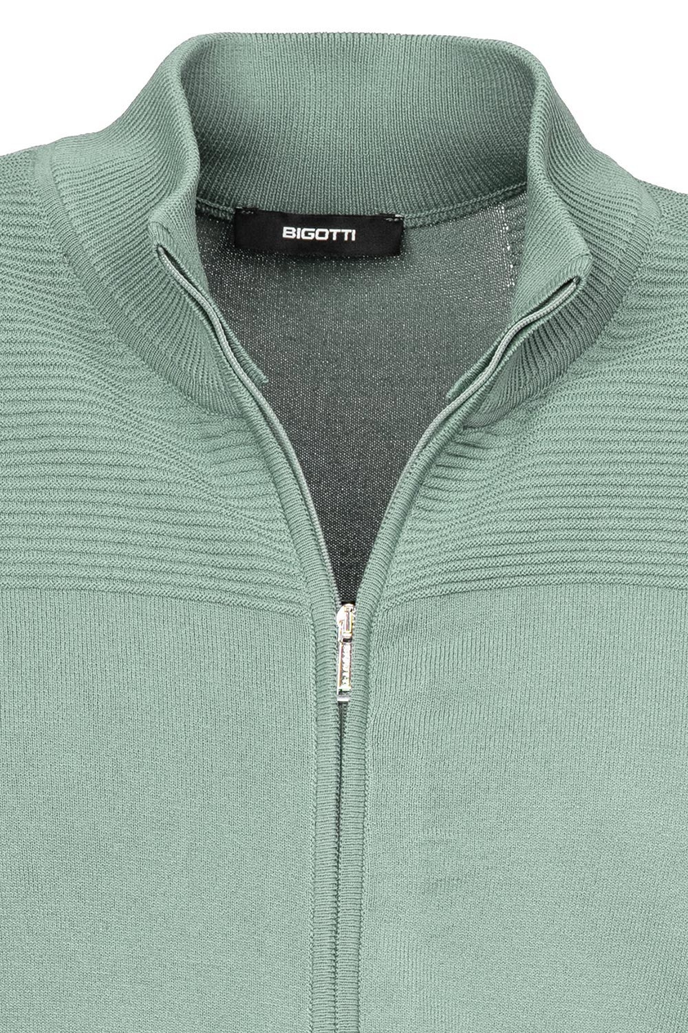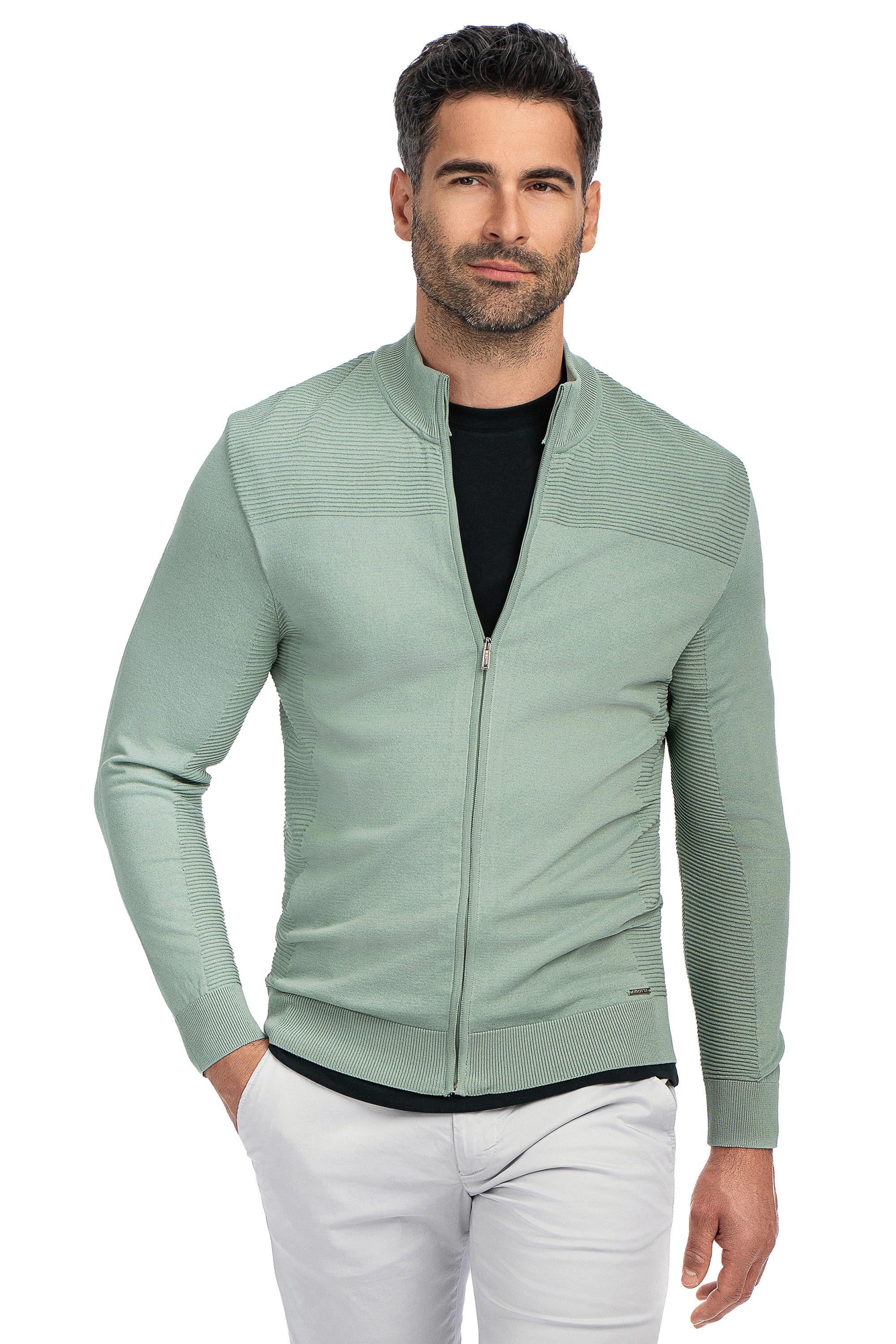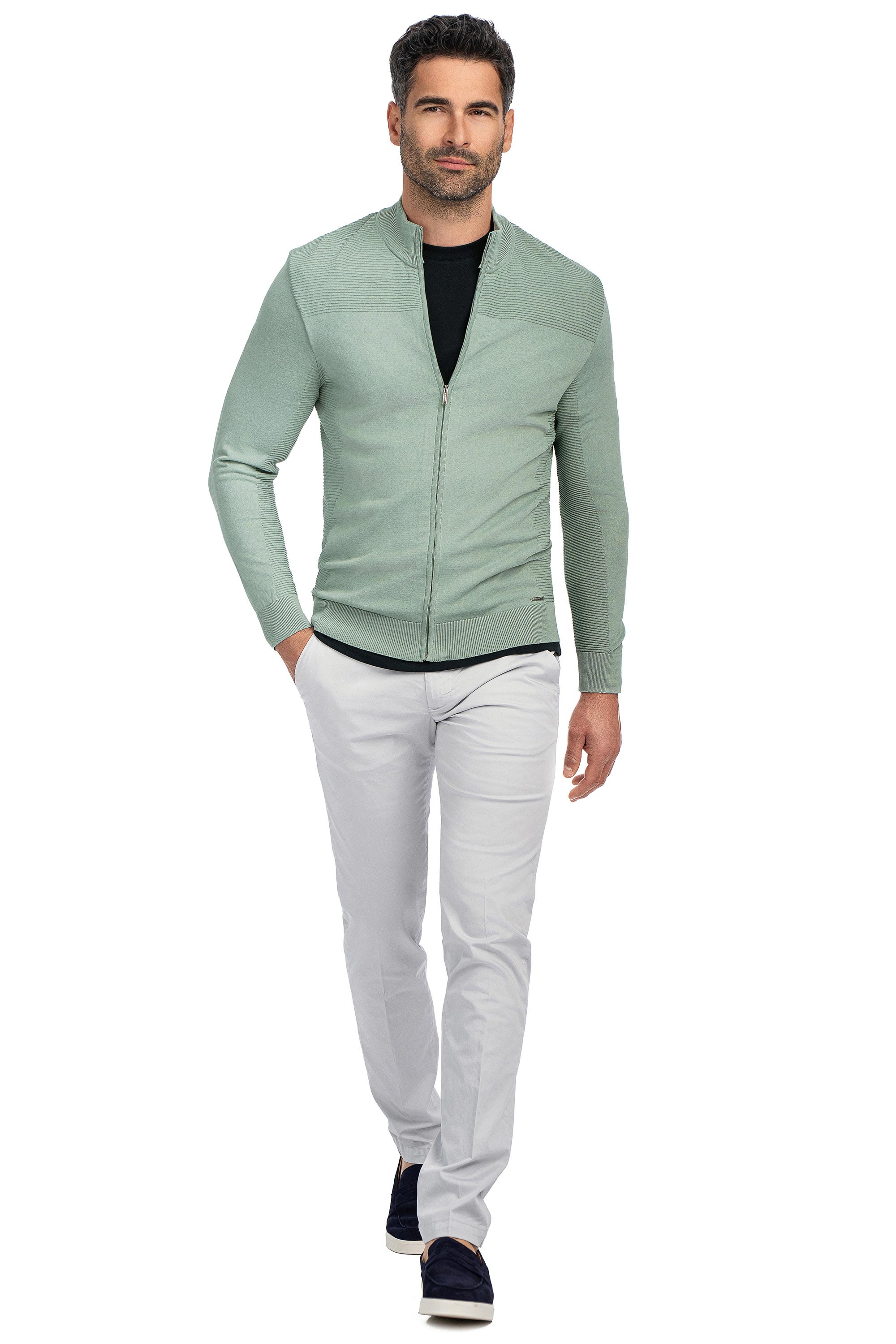 Pulover slim verde cu fermoar din poliester si vascoza