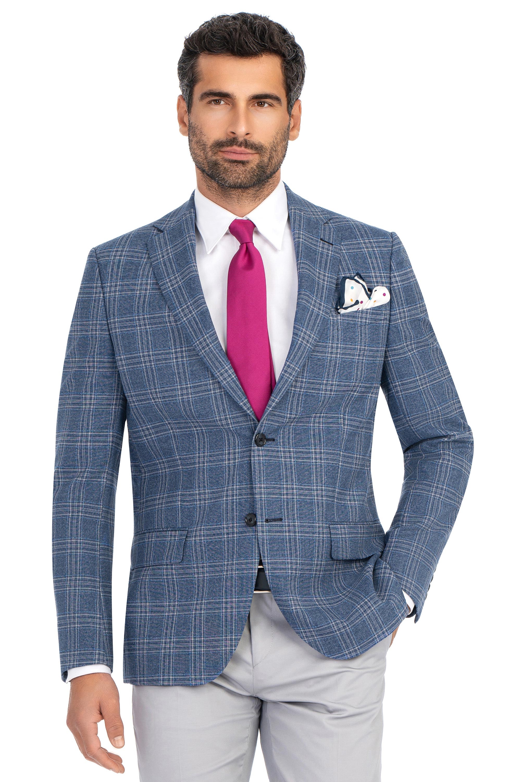 Sacou conti albastru in carouri