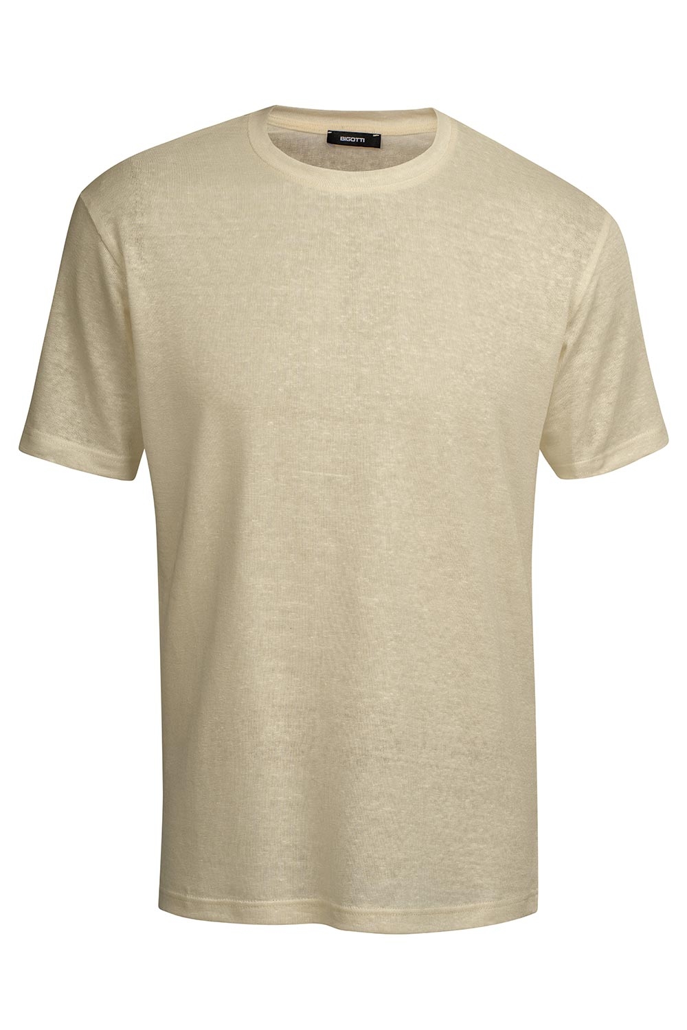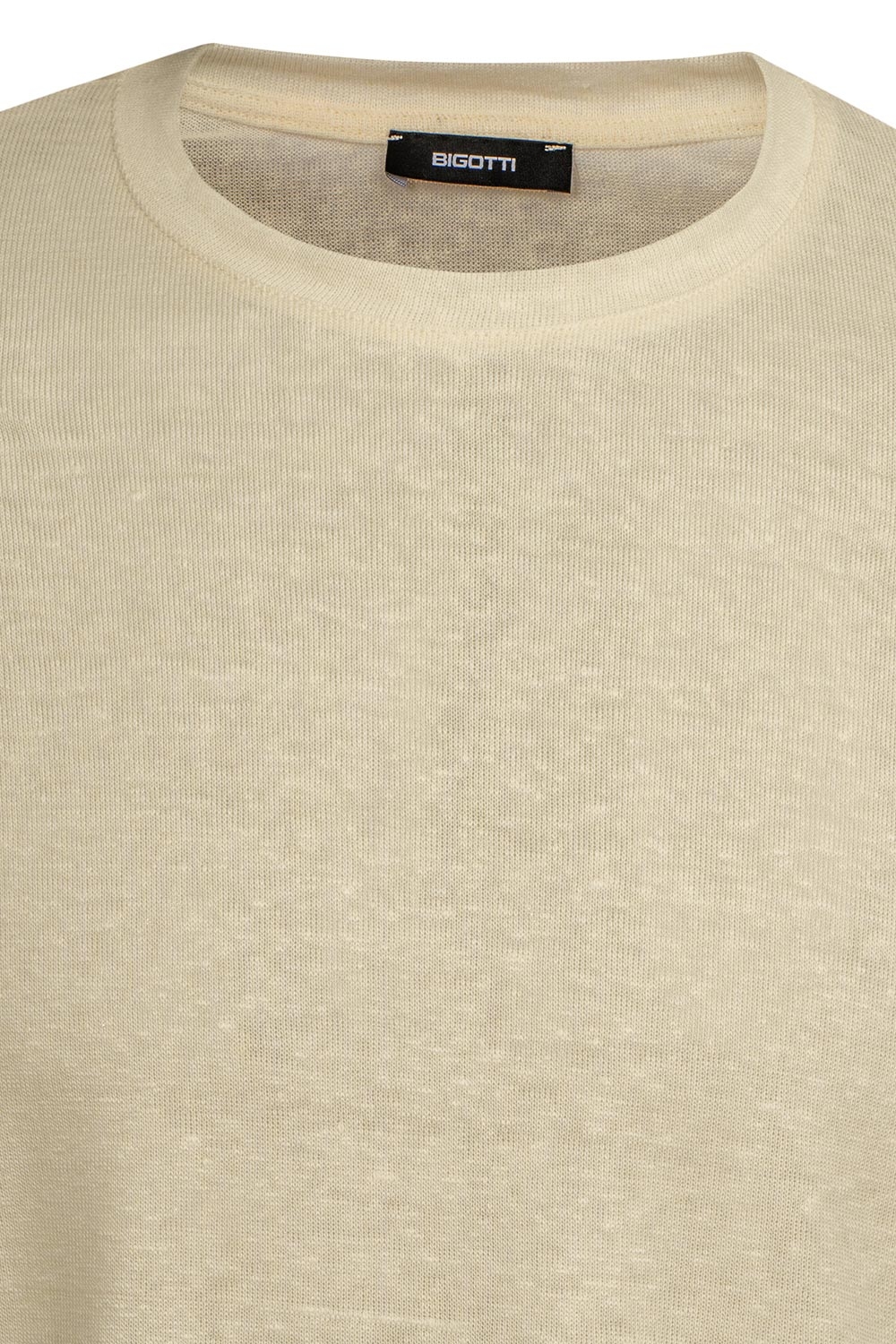 Tricou din in slim bej uni guler rotund 1