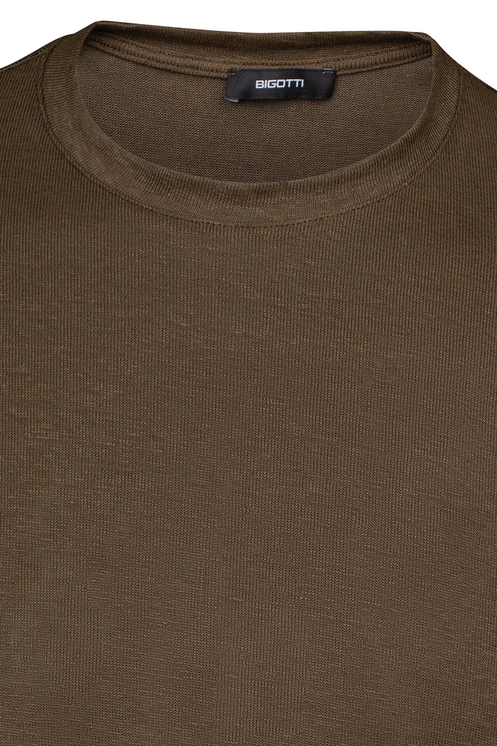 Tricou din in slim maro uni guler rotund 1