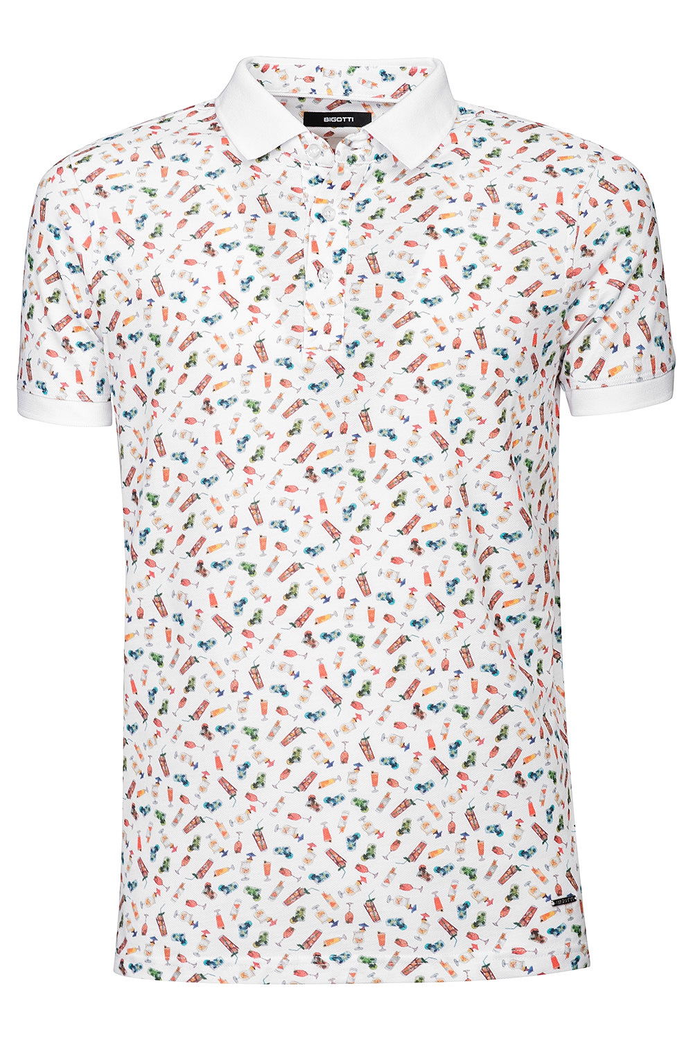 Tricou polo slim alb print geometric 0