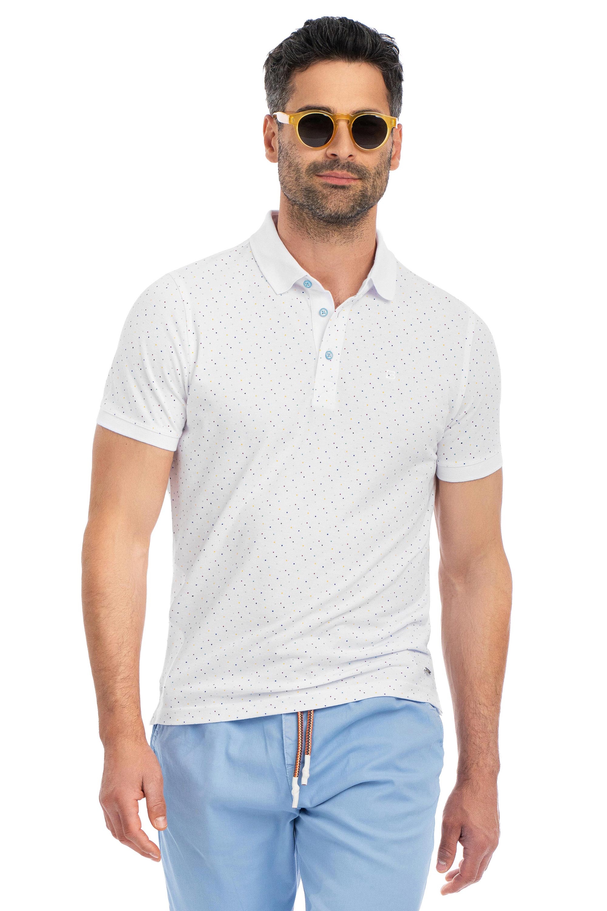 Tricou polo regular alb print geometric 1