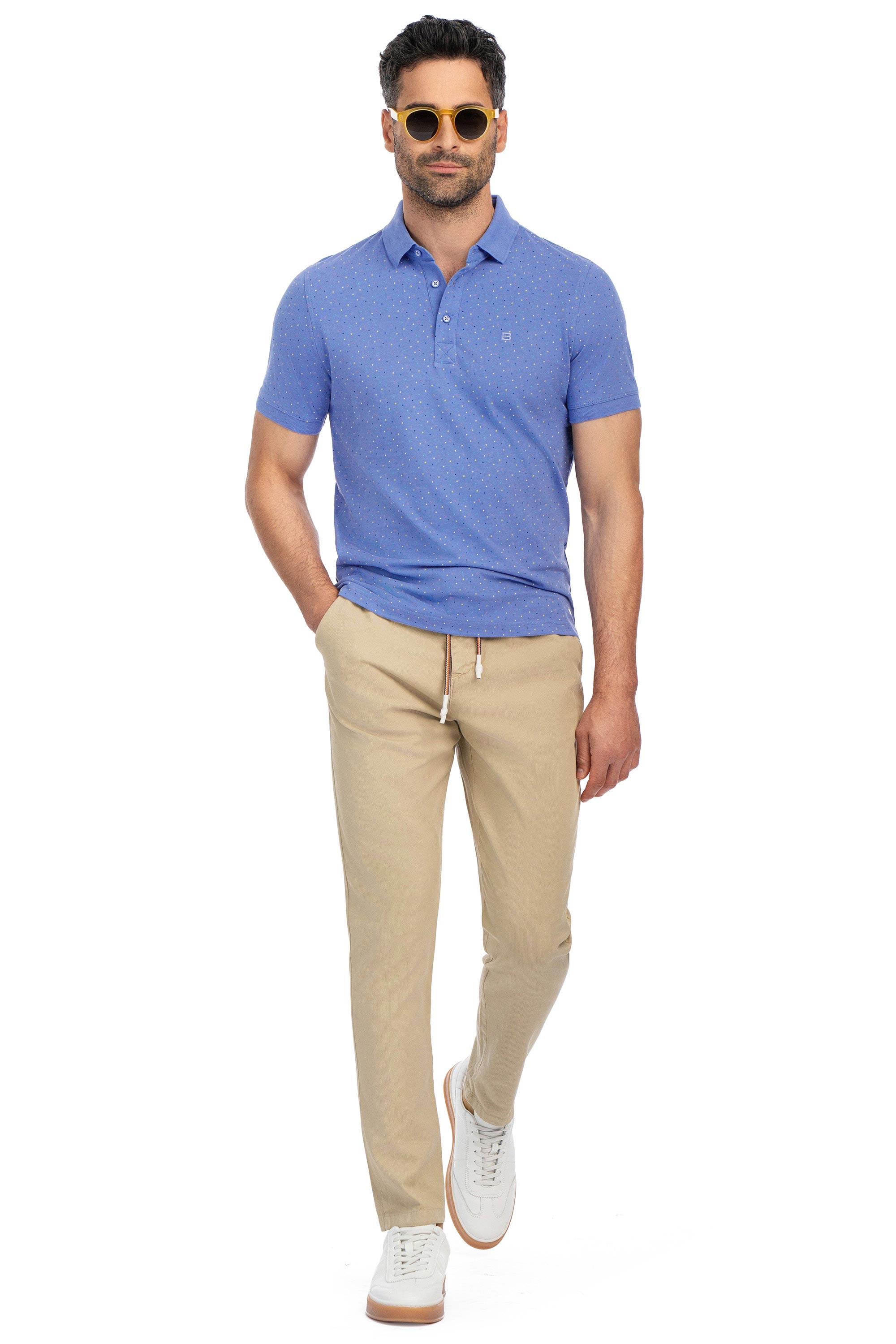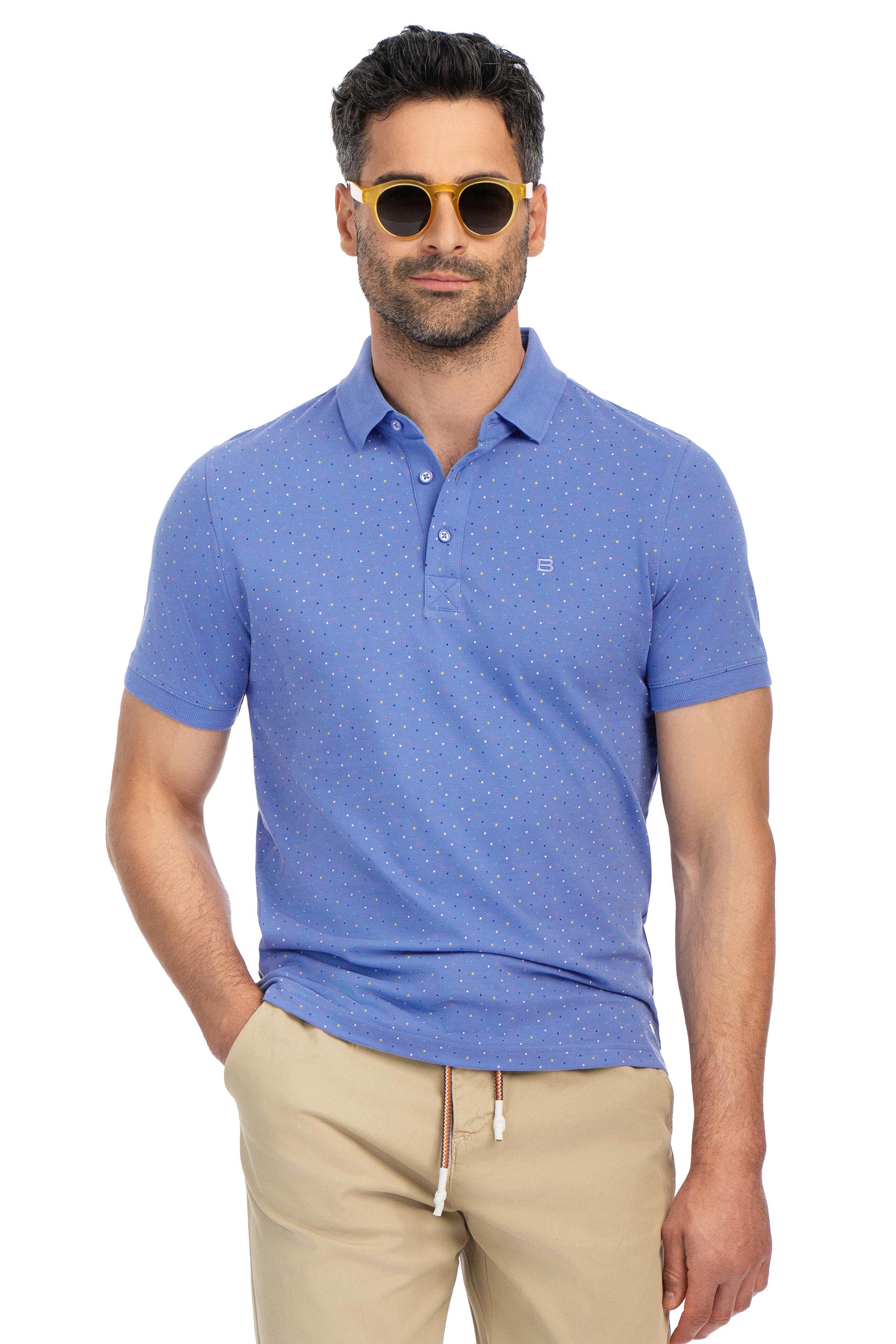 Tricou polo regular bleu print geometric 1