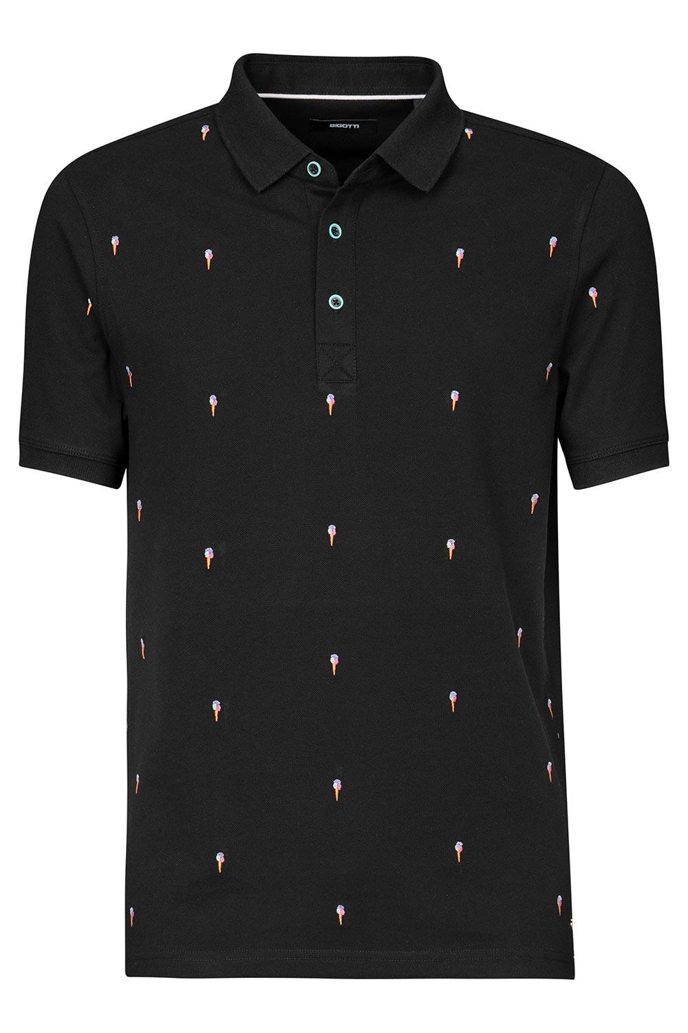 Tricou polo regular negru print geometric 1