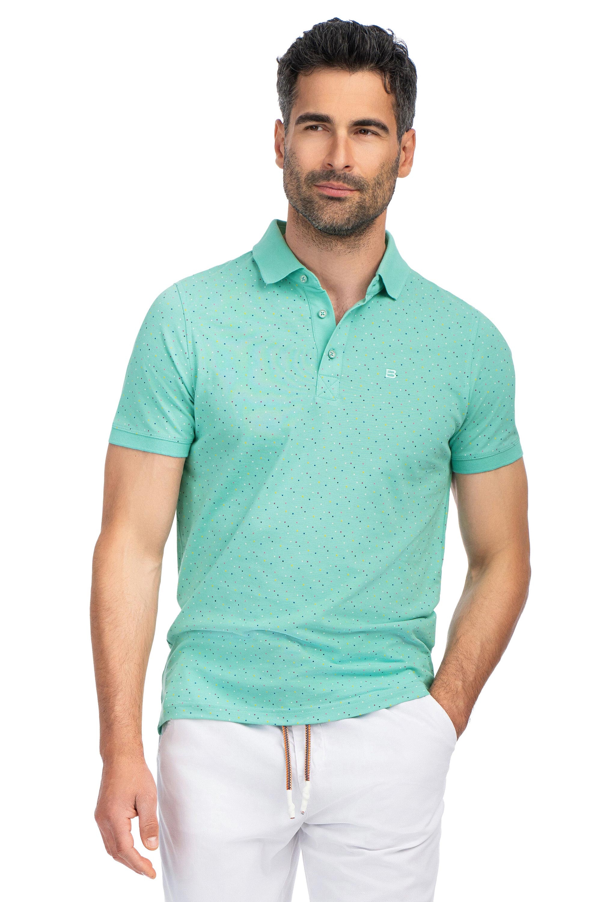 Tricou polo regular verde print geometric 1