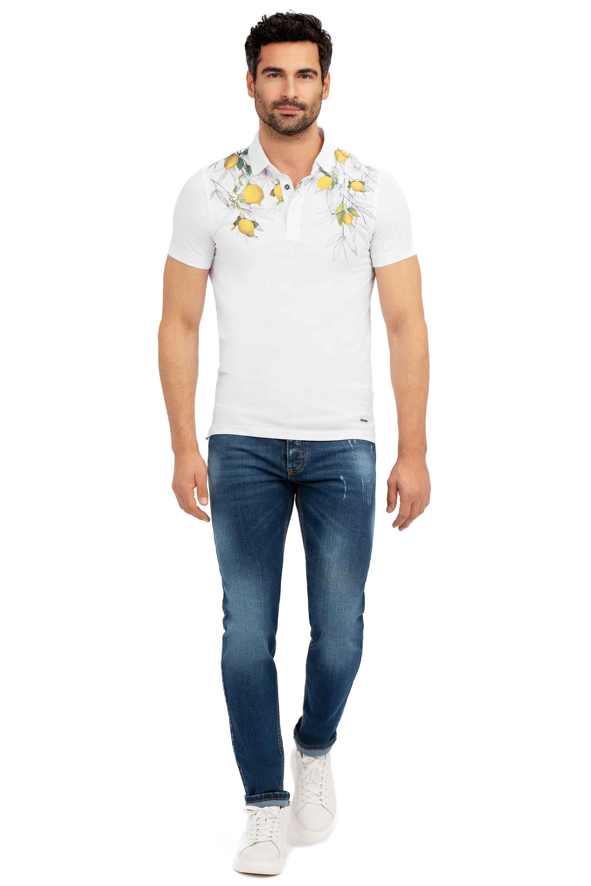 Tricou polo slim alb print