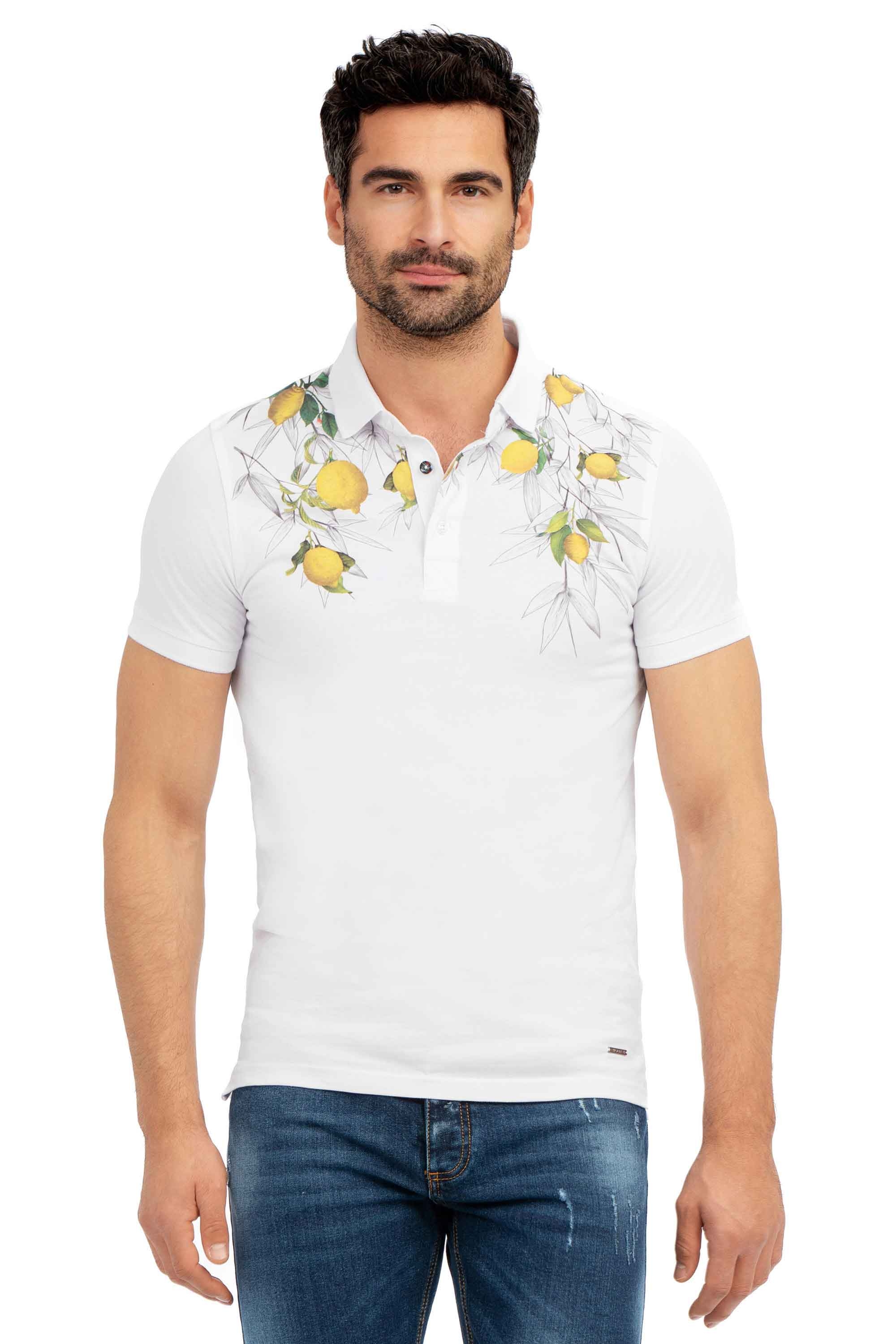 Tricou polo slim alb print 1
