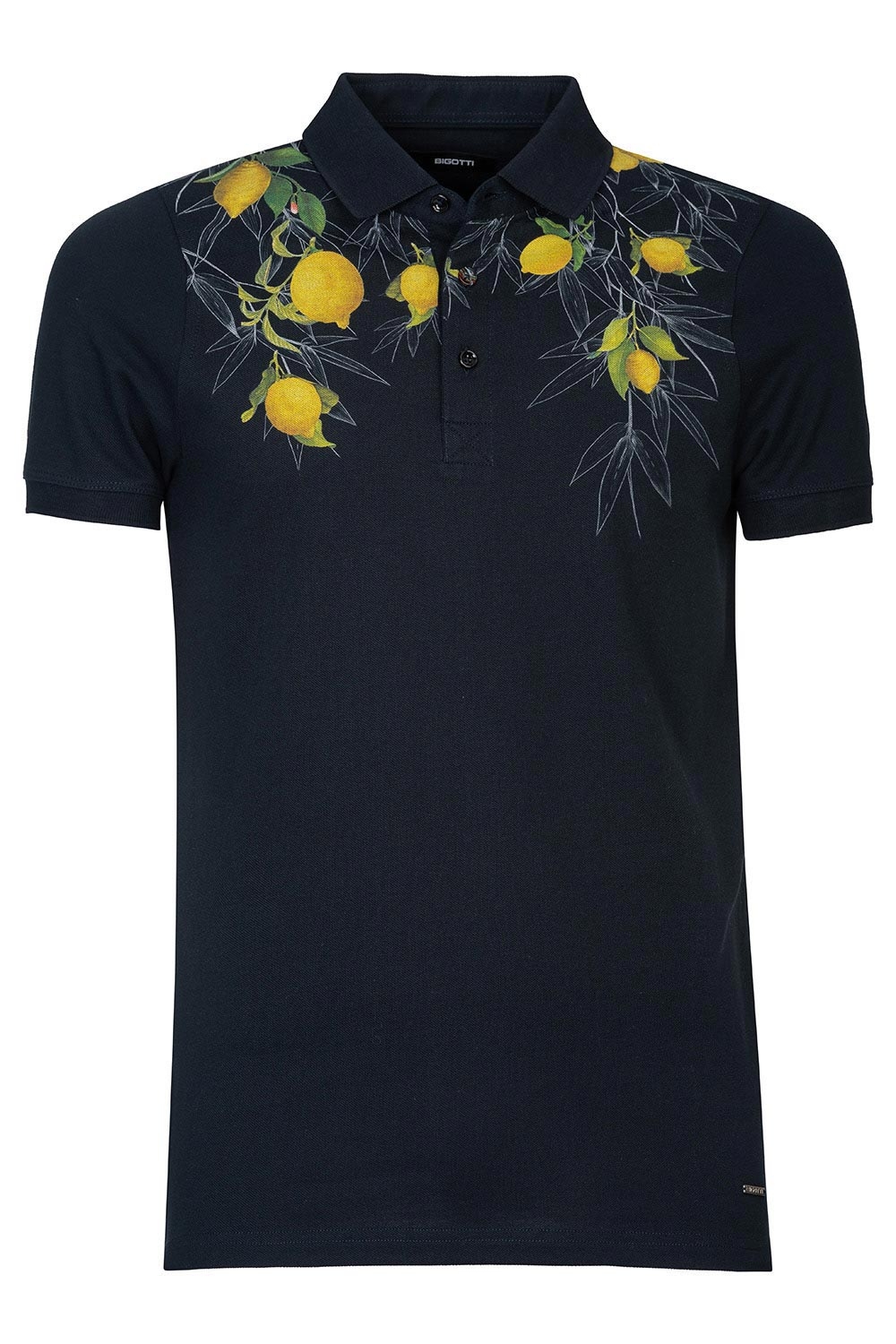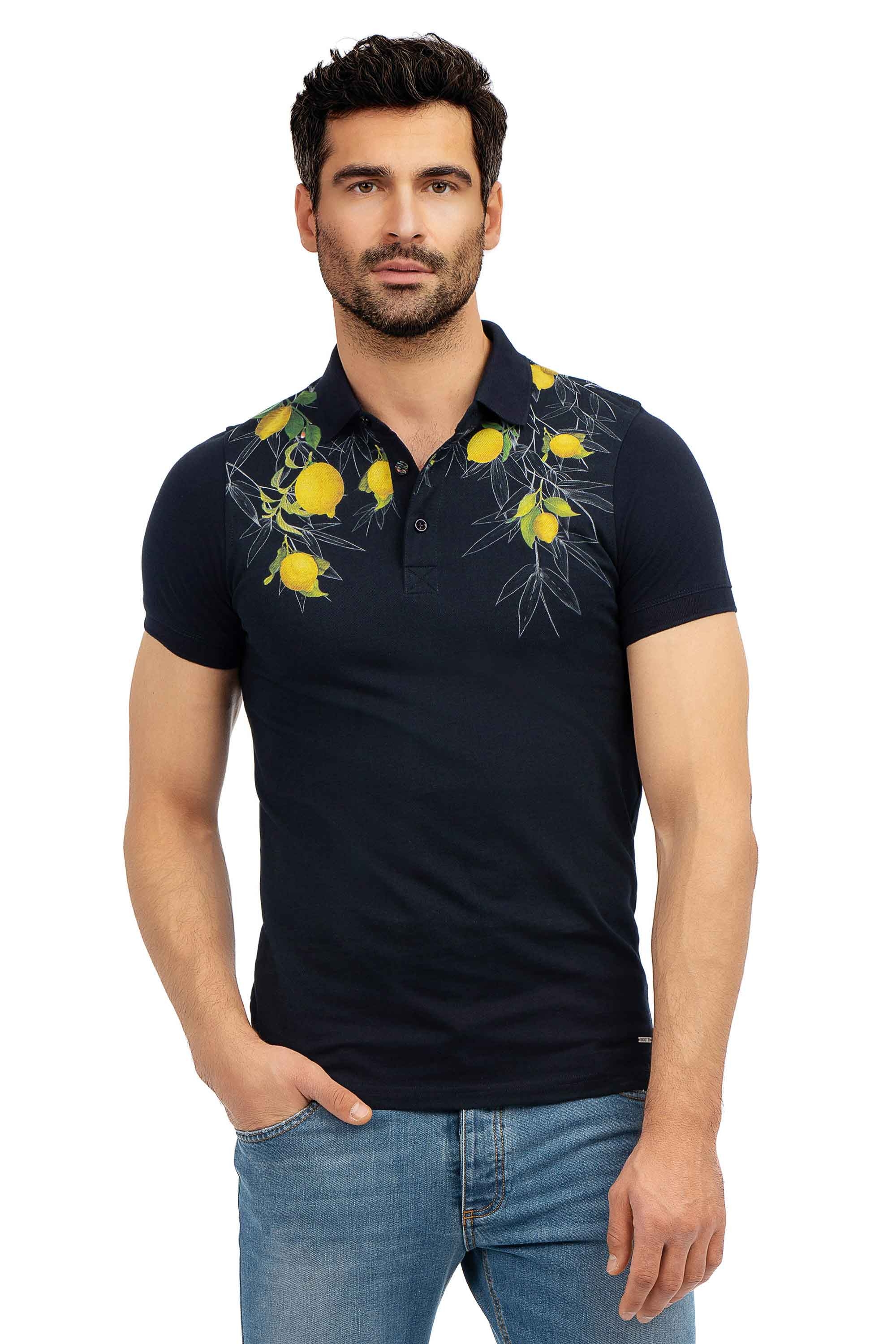 Tricou polo slim bleumarin print 1
