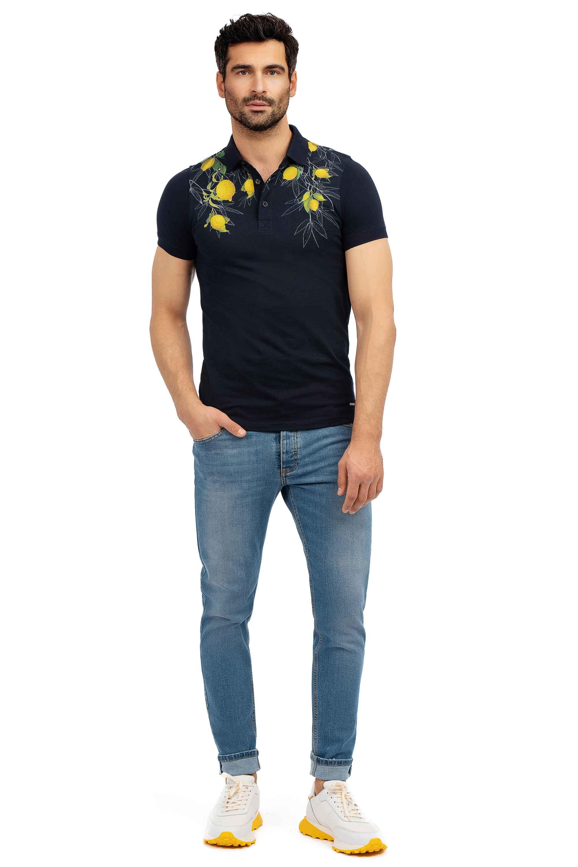Tricou polo slim bleumarin print