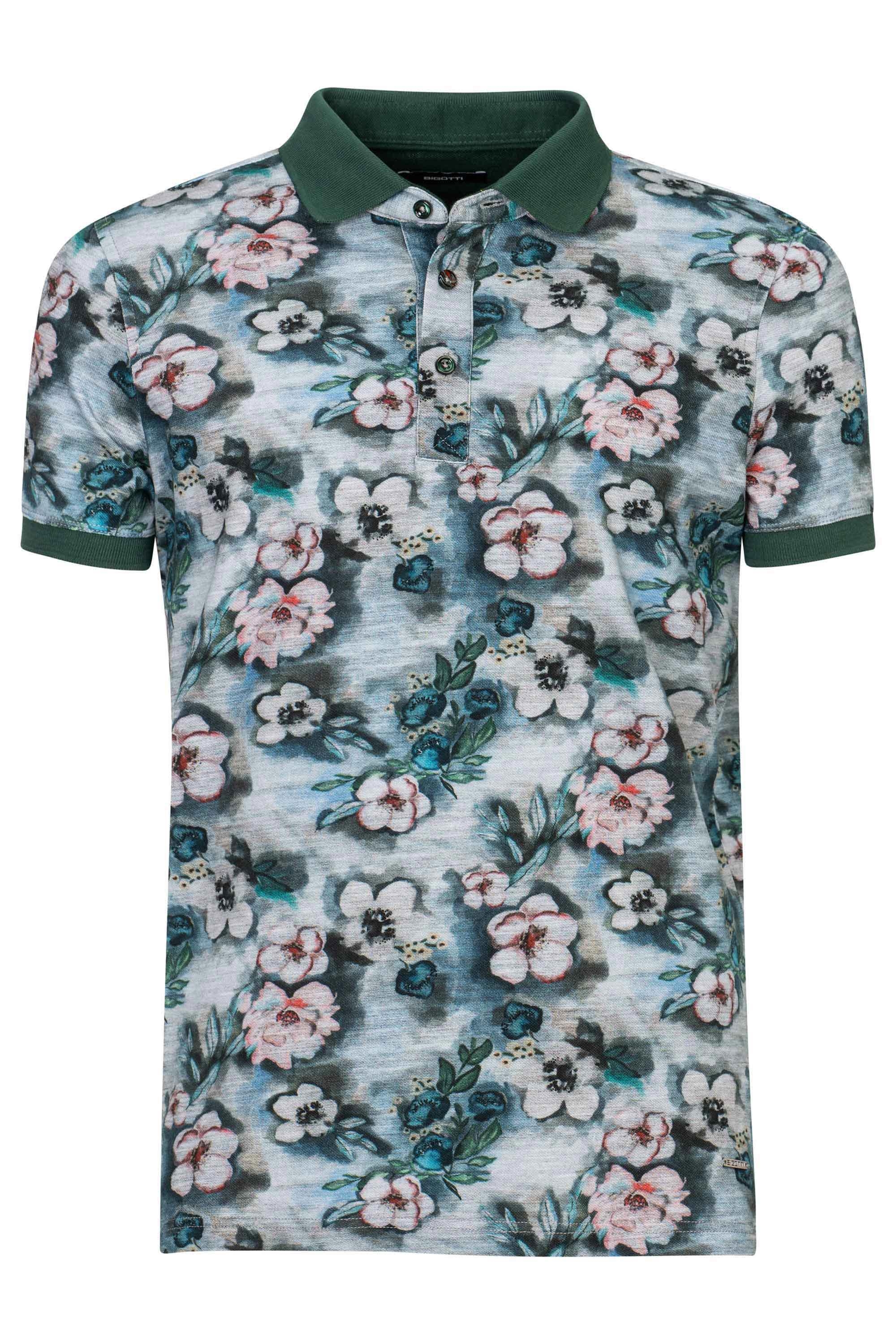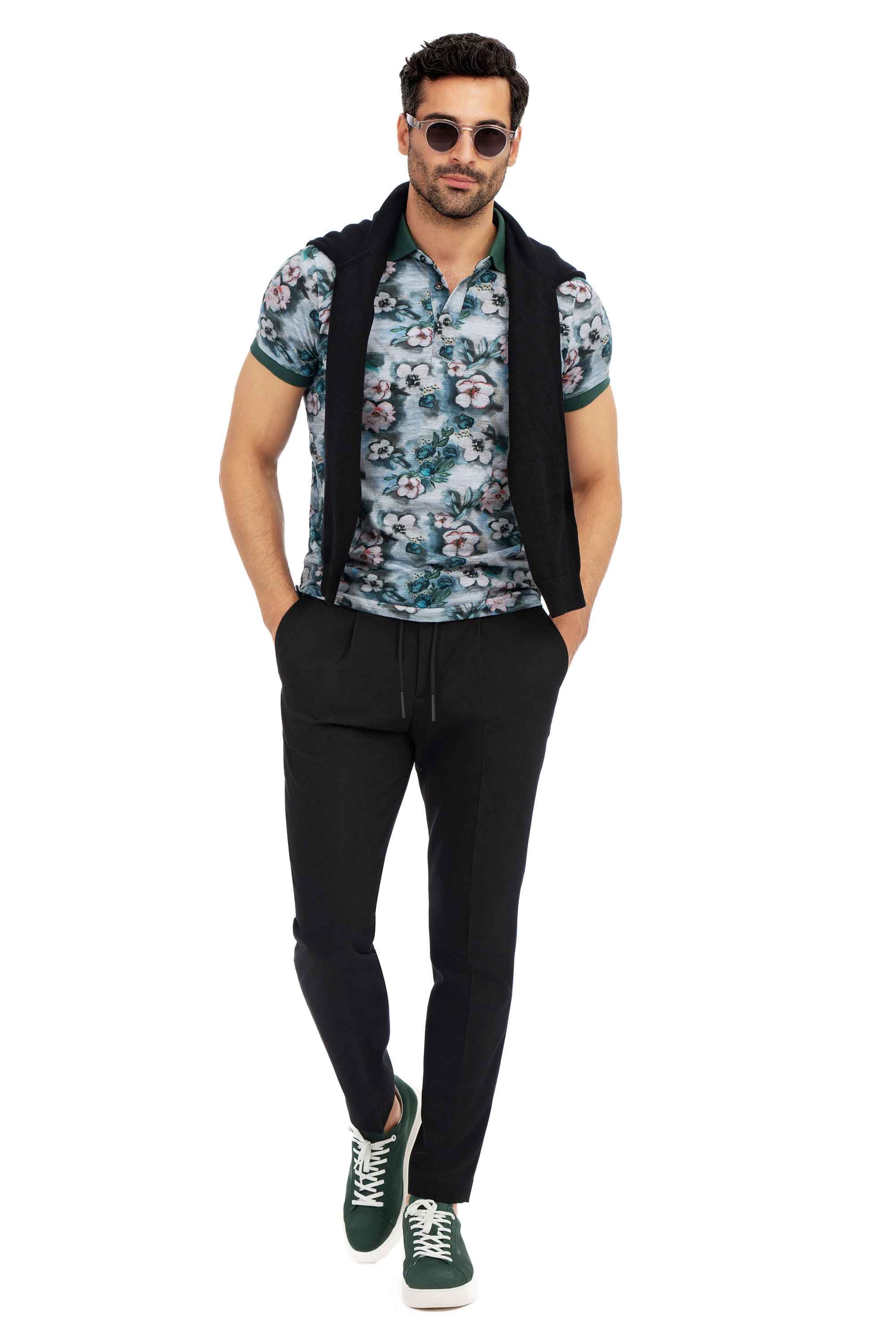 Tricou polo slim gri print floral 1