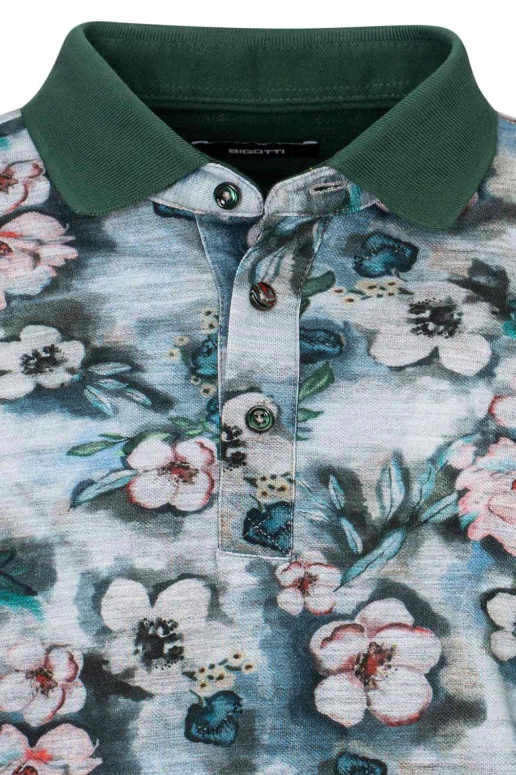 Tricou polo slim gri print floral 3