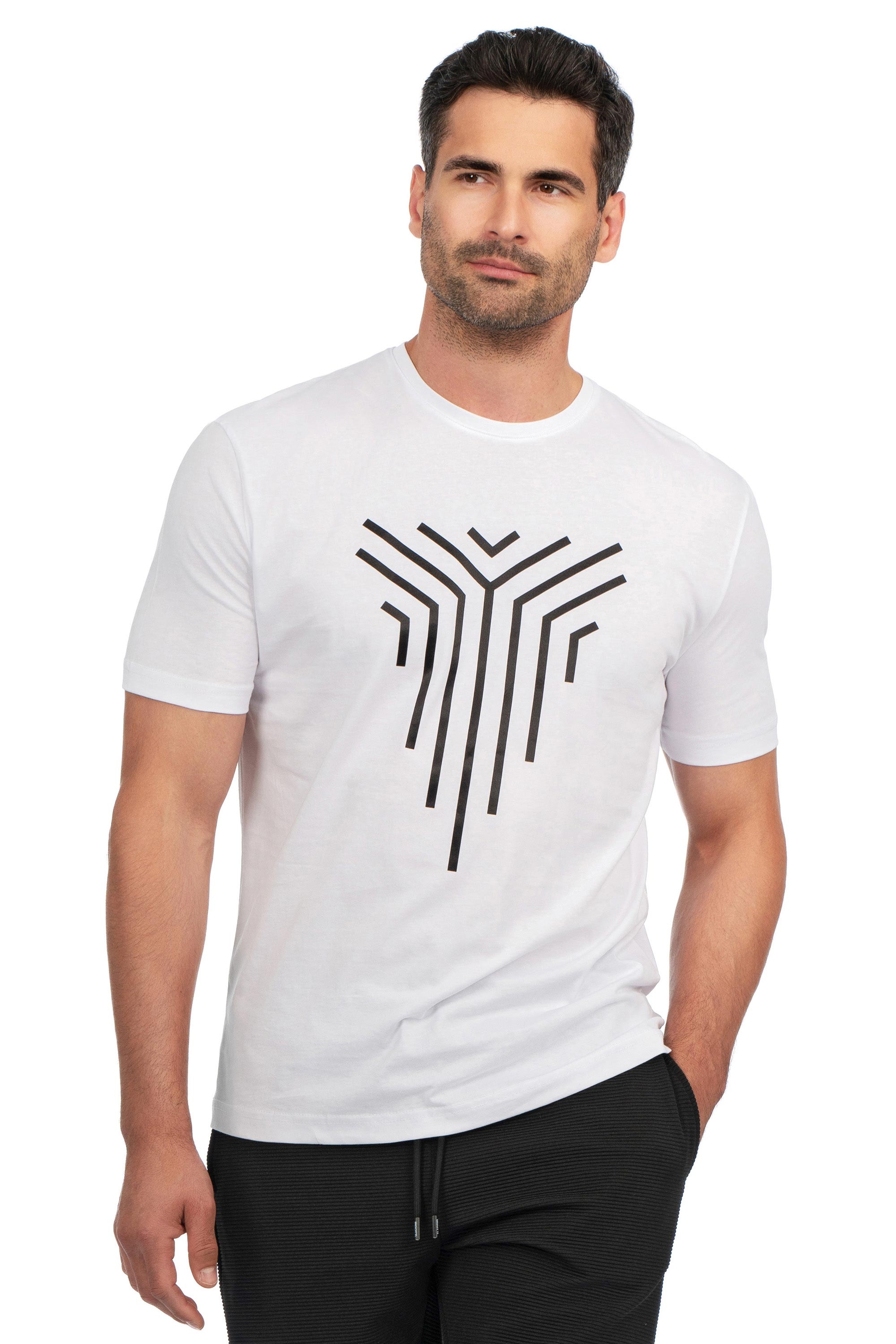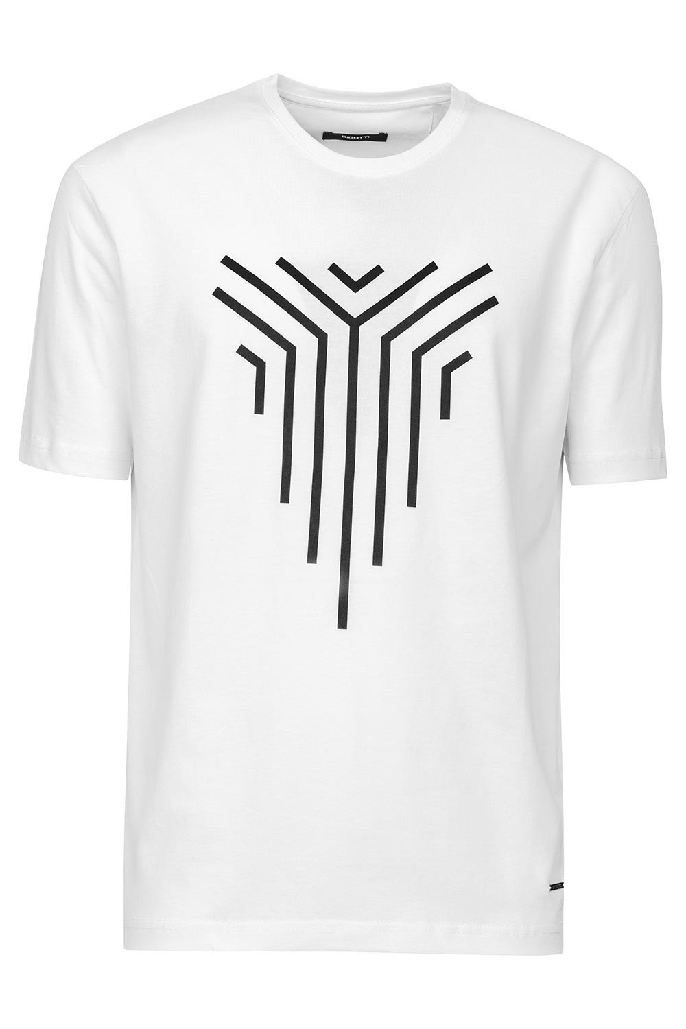 Tricou slim alb print guler rotund 1