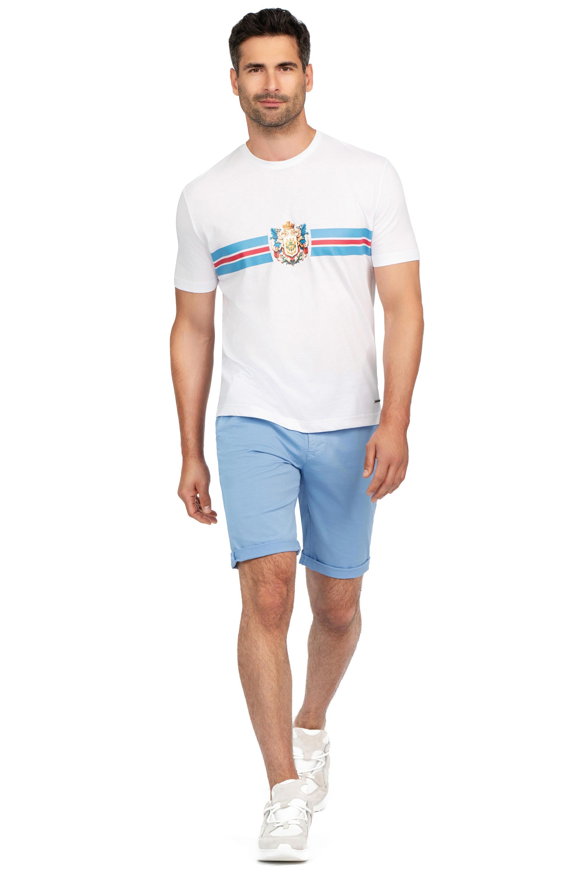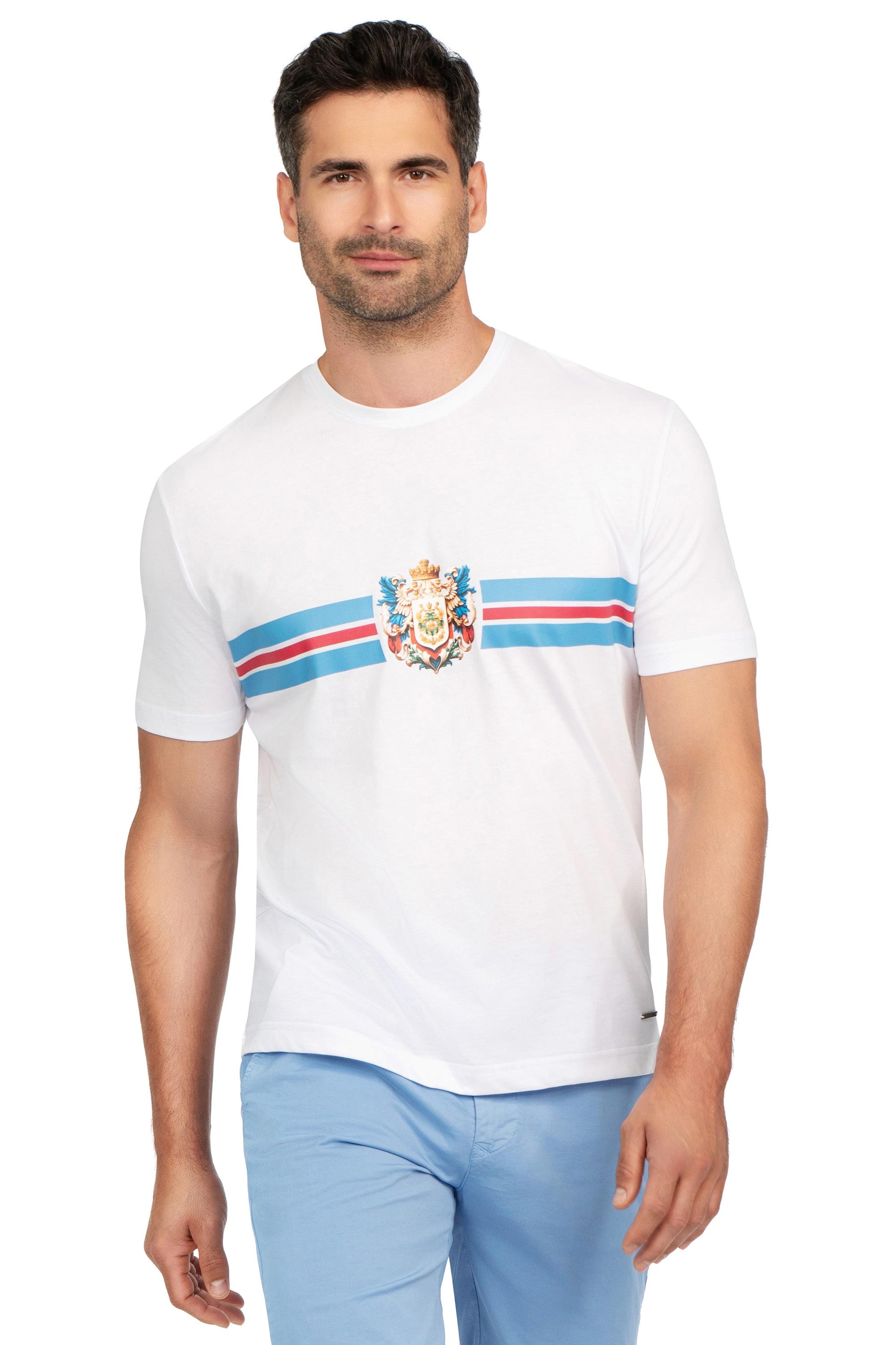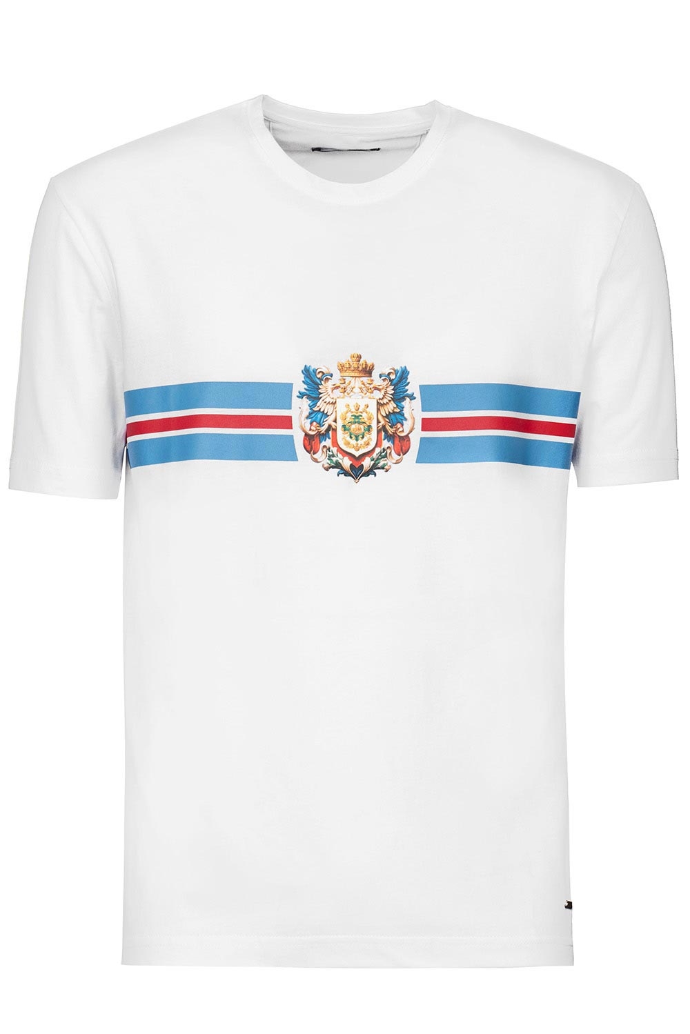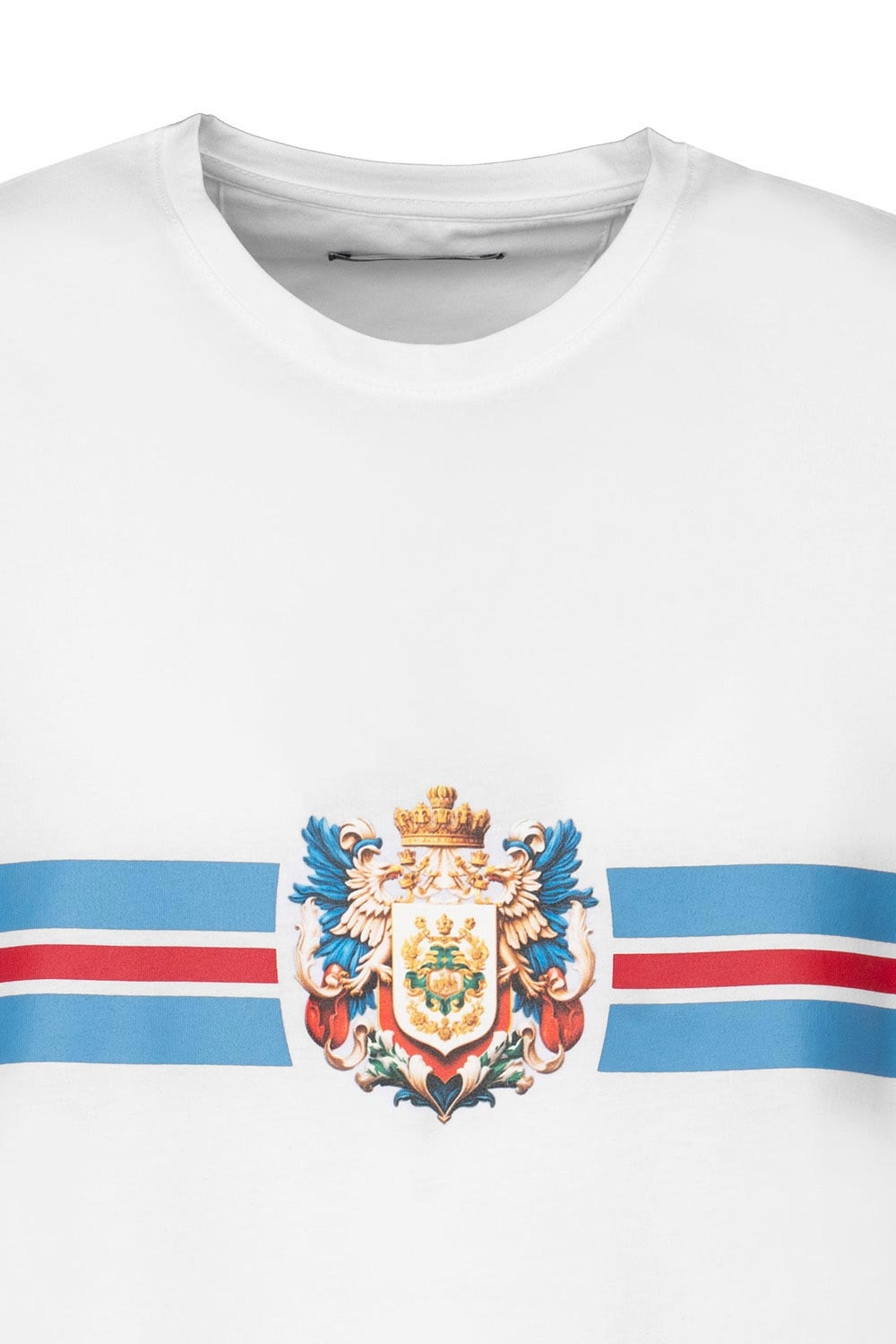 Tricou slim alb print guler rotund 1