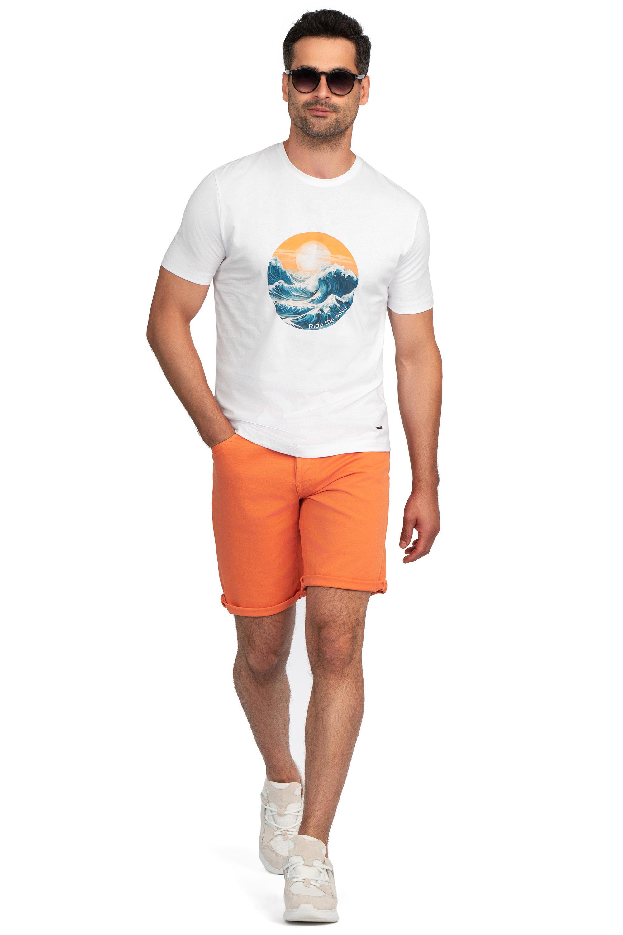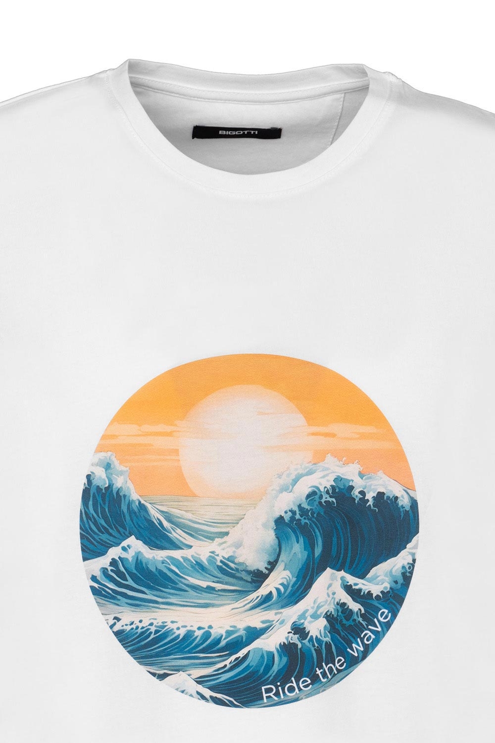 Tricou slim alb print guler rotund 1