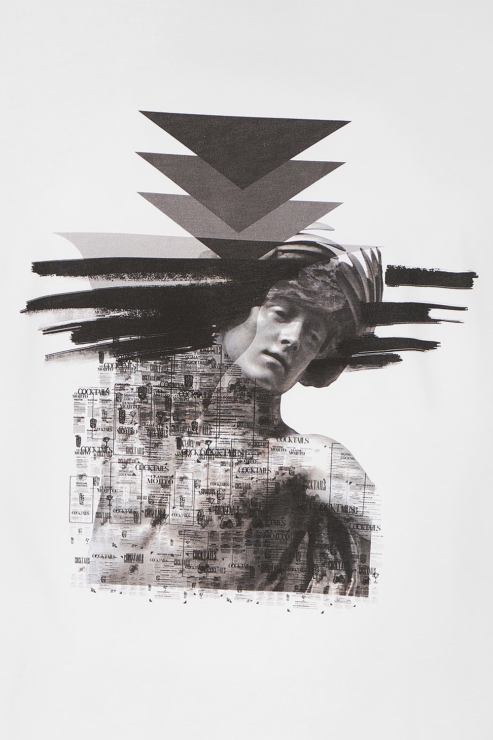 Tricou slim alb print guler rotund 1