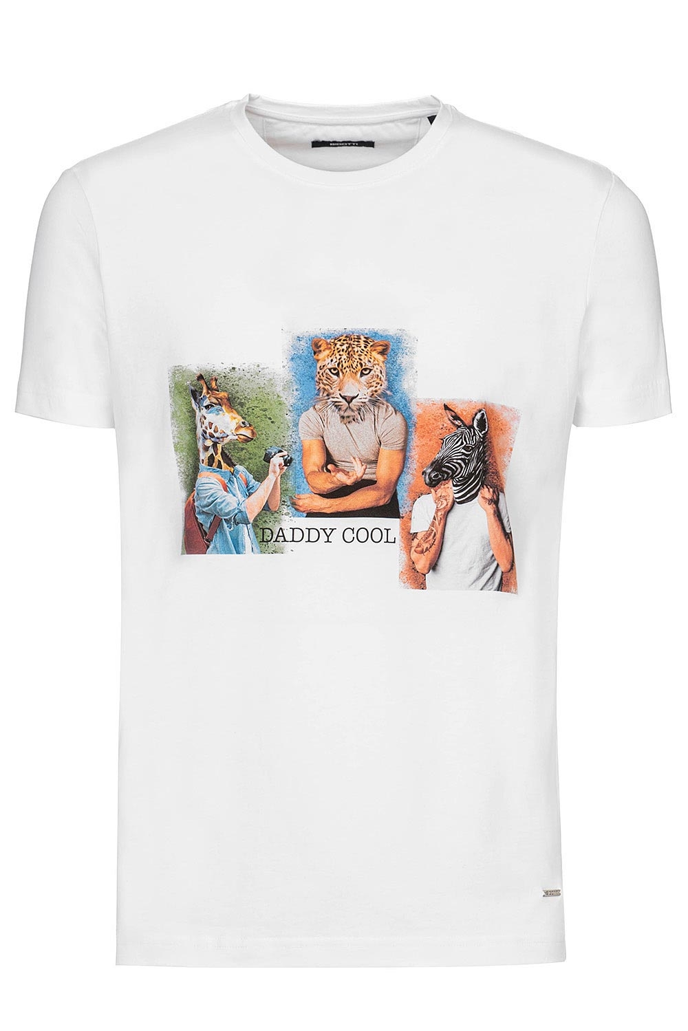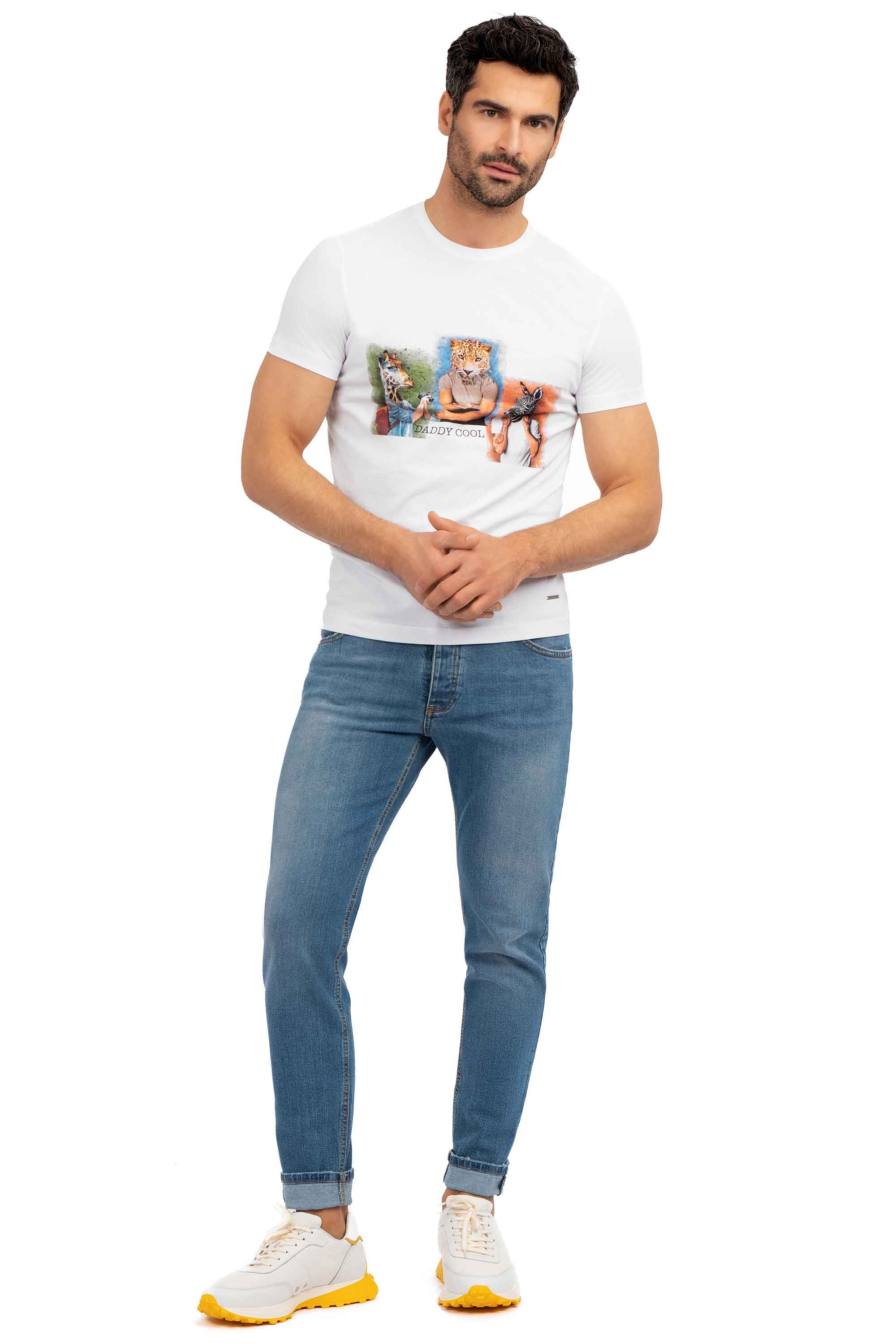 Tricou slim alb print guler rotund 1