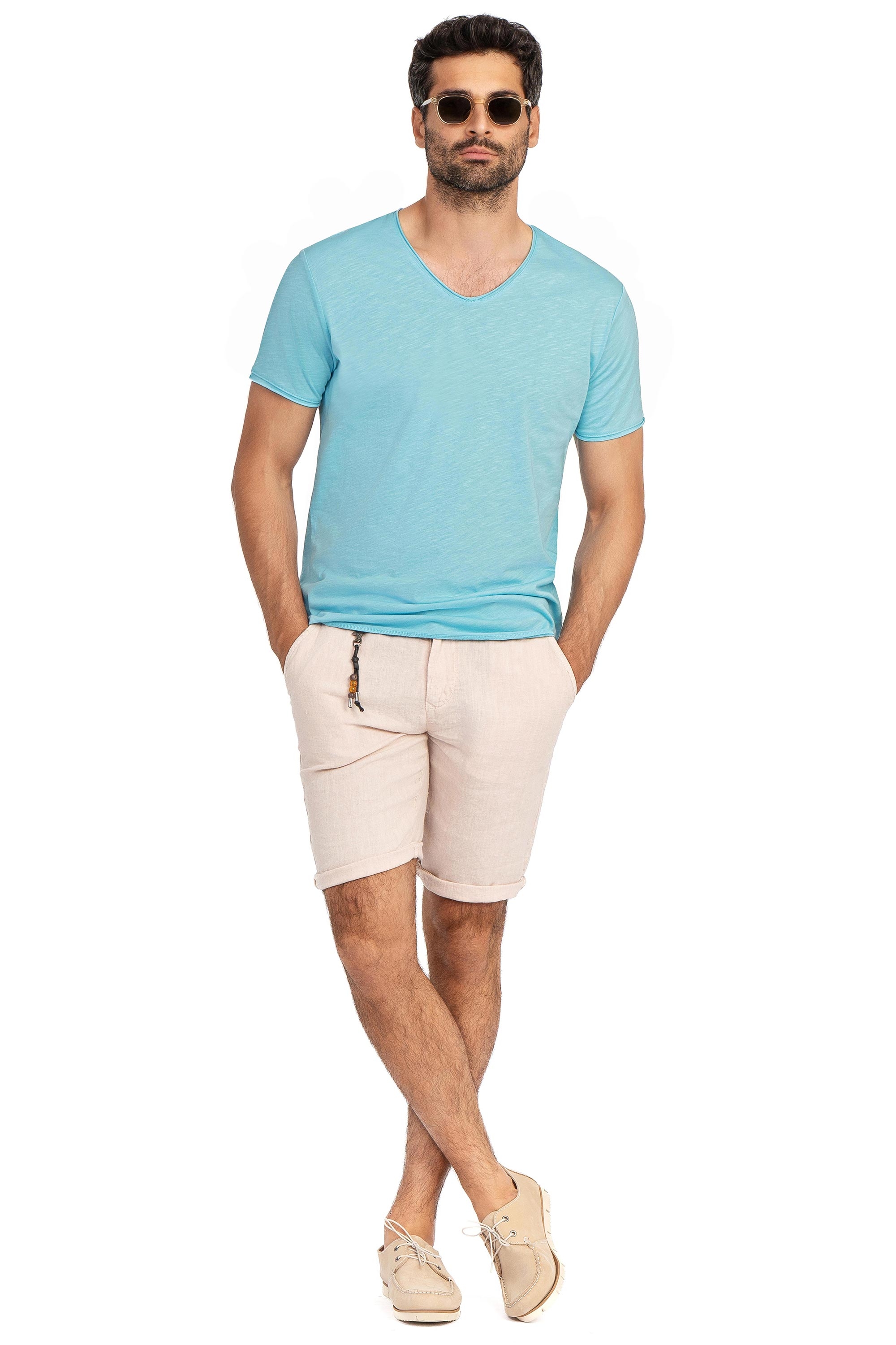 Tricou slim bleu guler in v 3