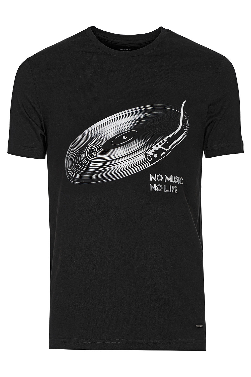 Tricou slim negru print guler rotund 1