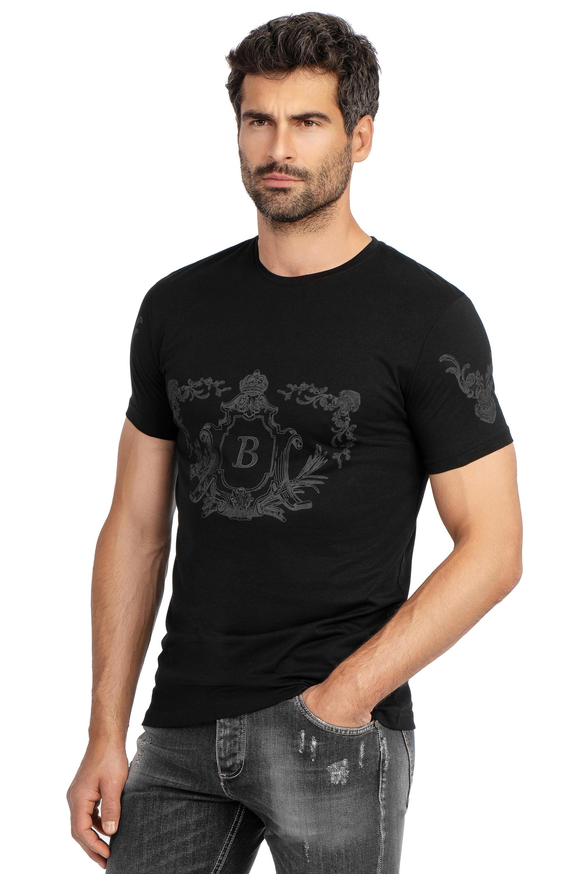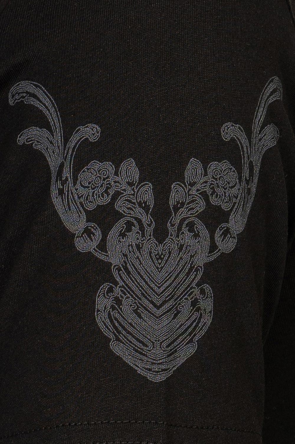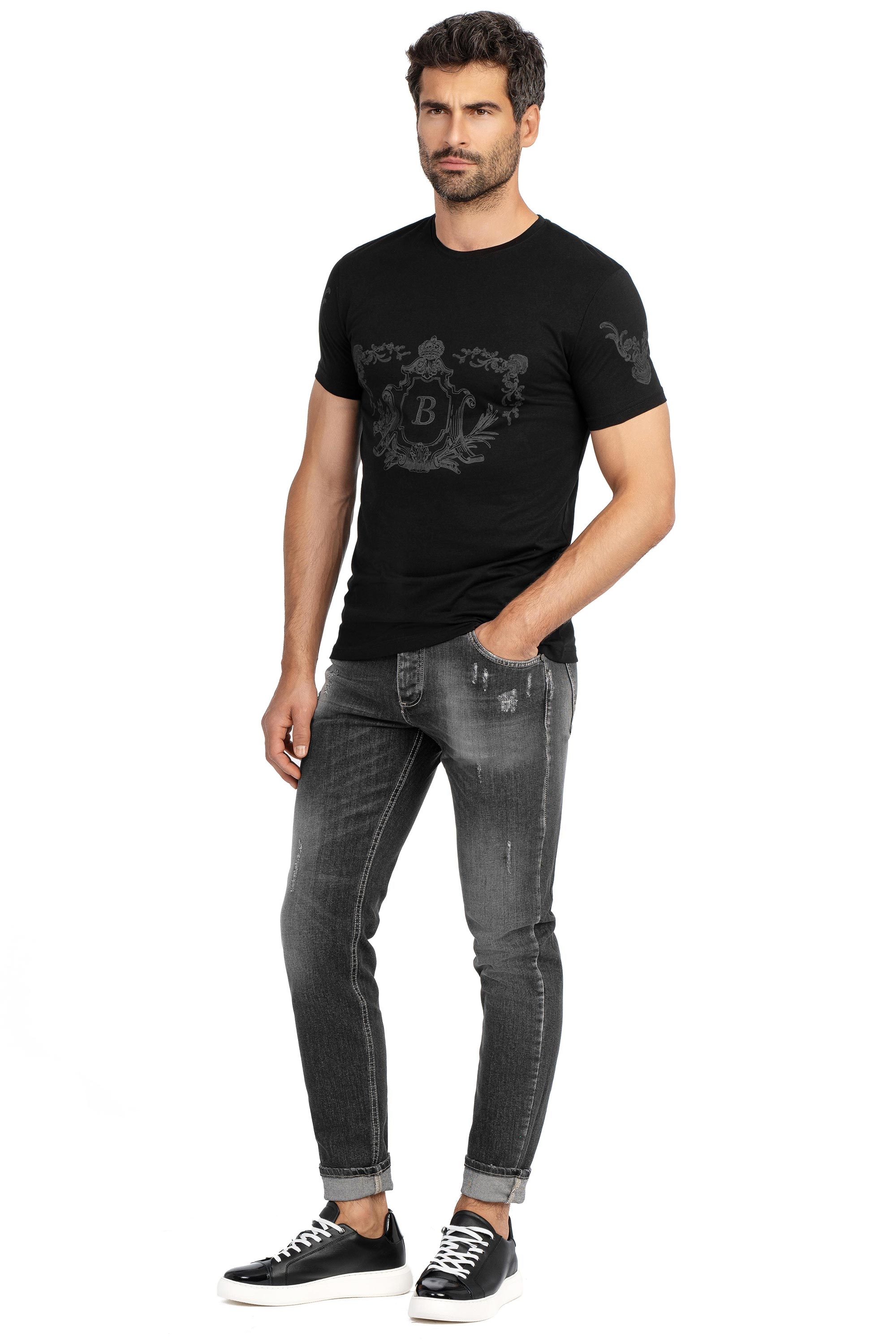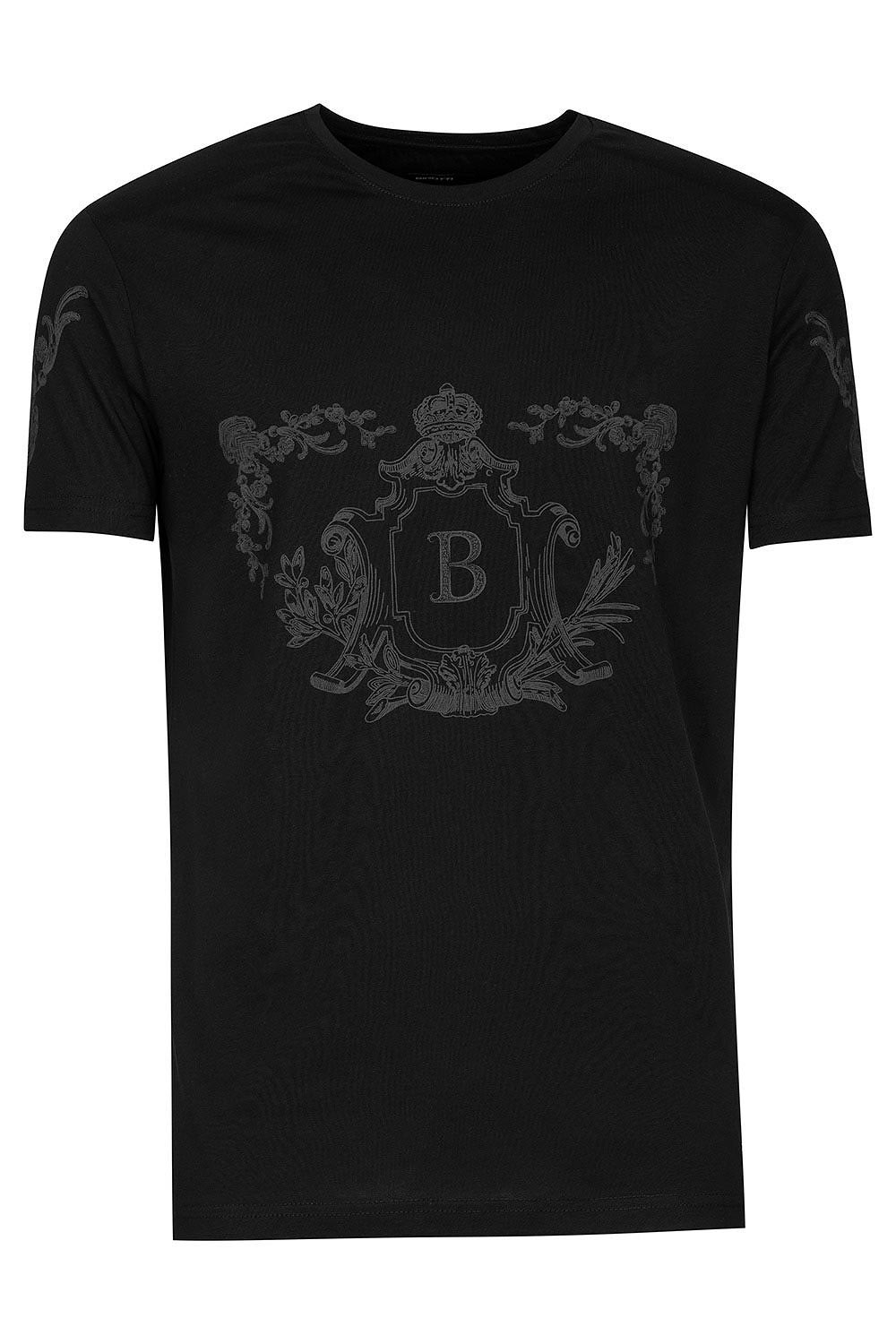 Tricou slim negru print guler rotund 1