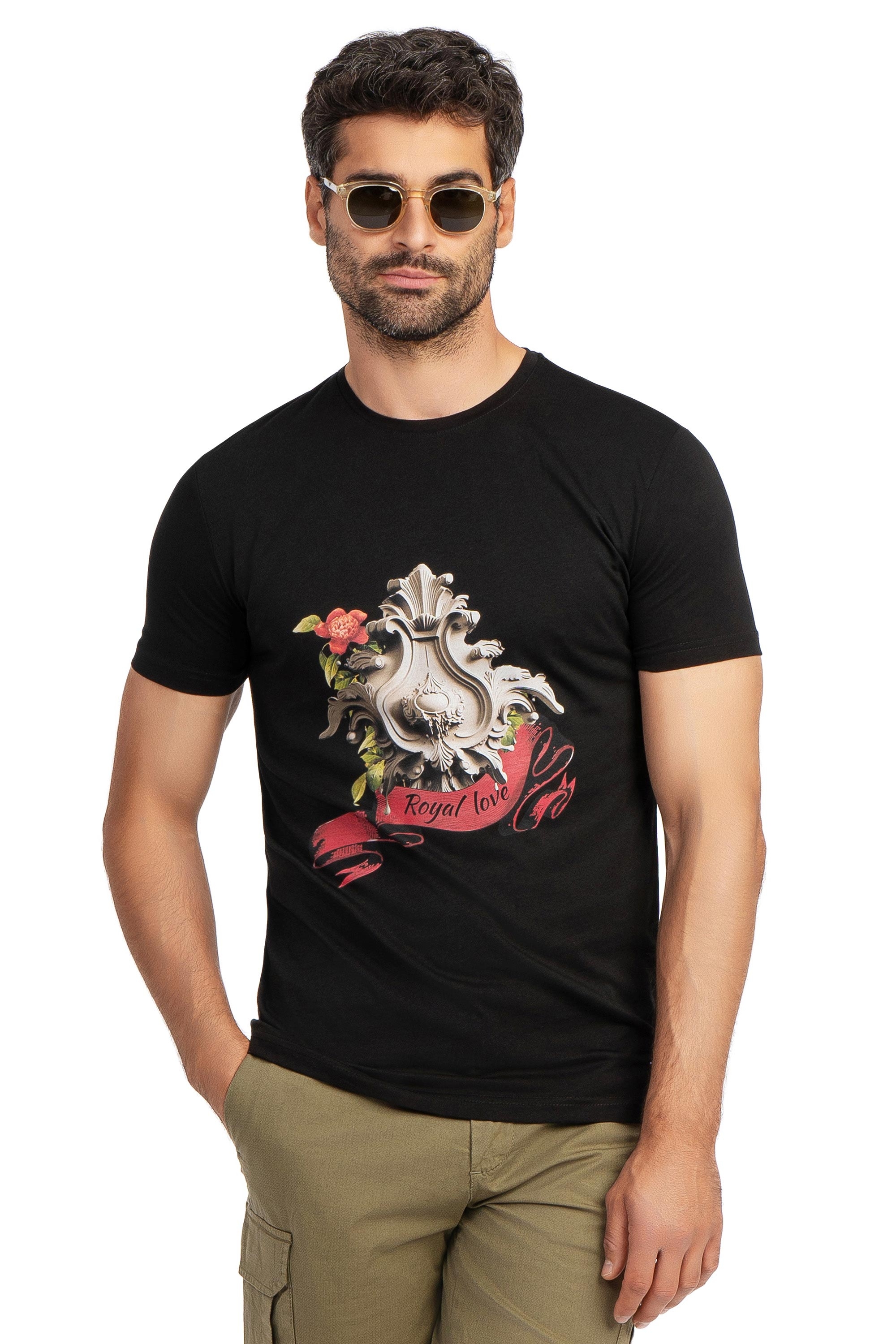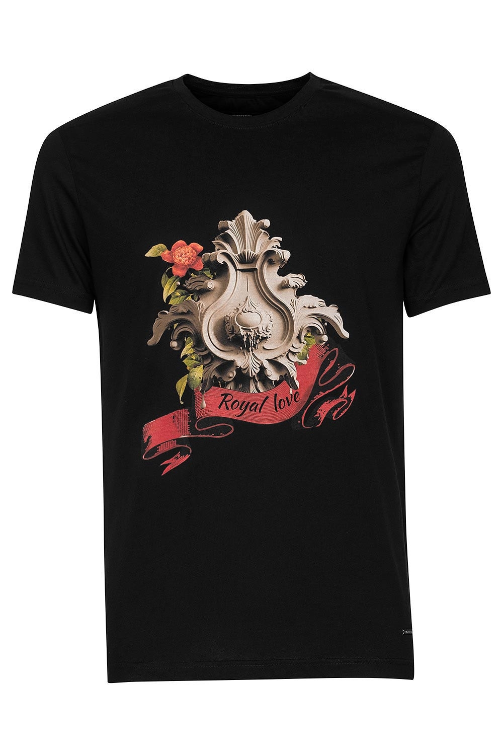 Tricou slim negru print guler rotund 1