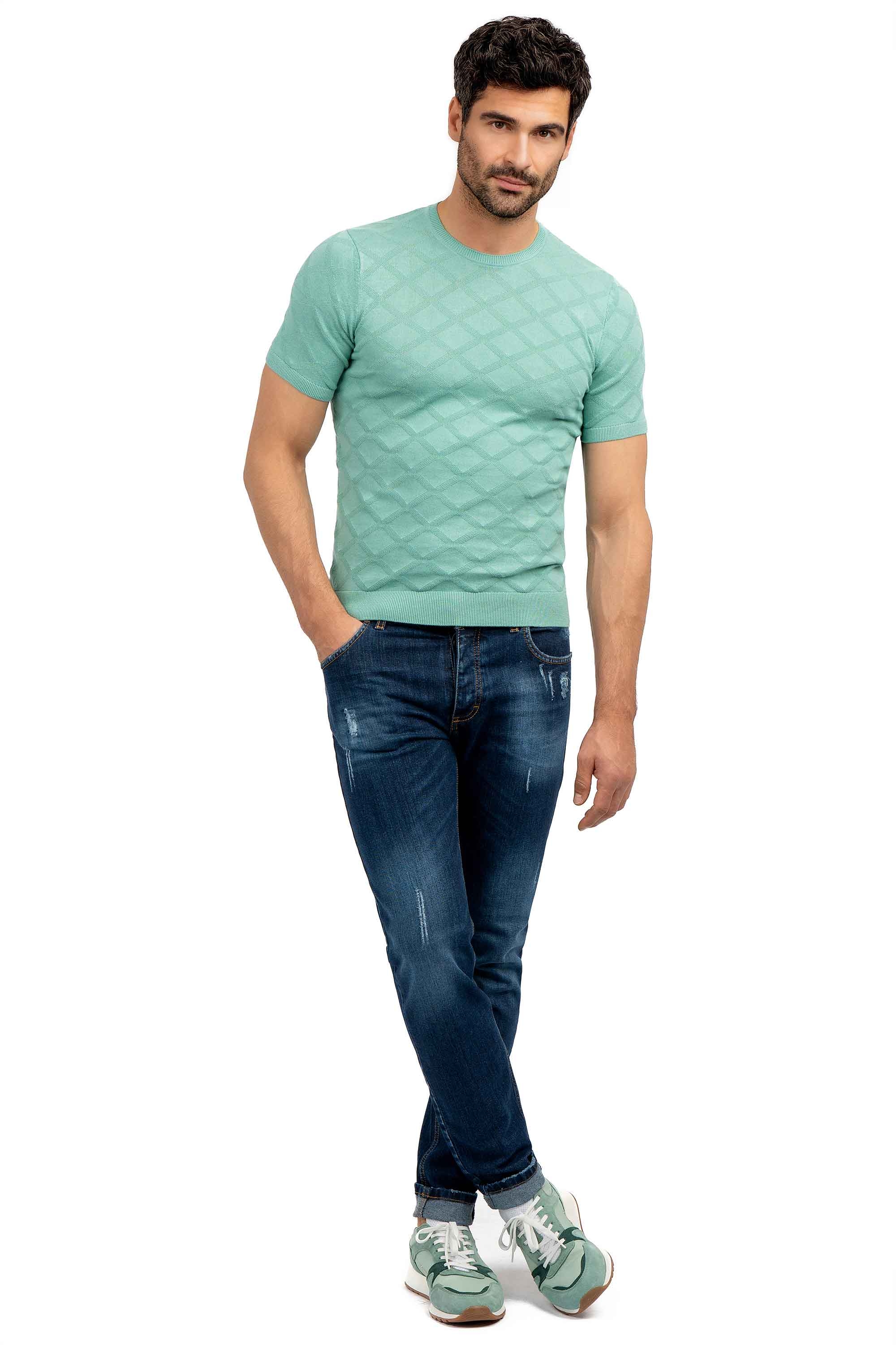 Tricou slim verde guler rotund 3