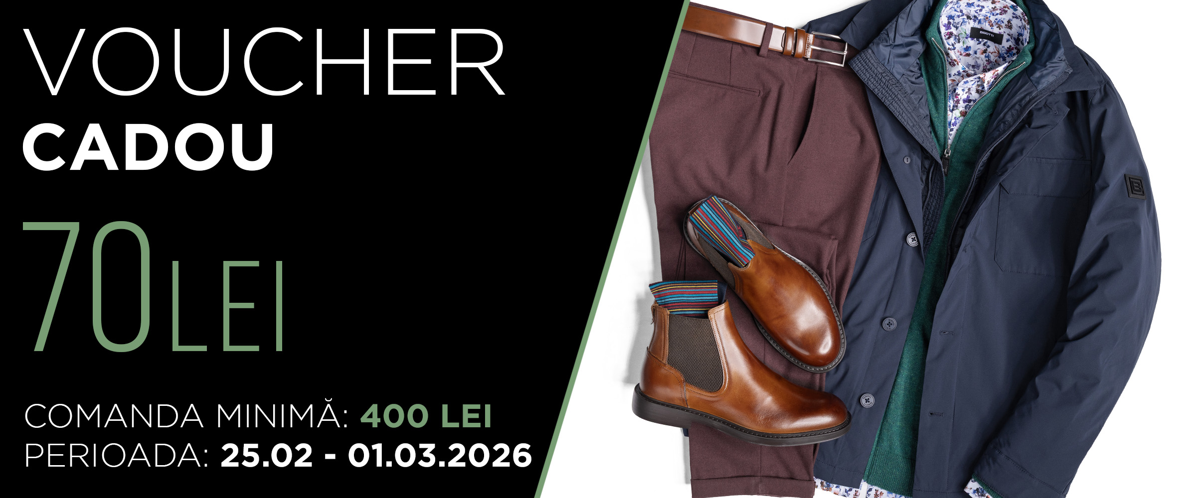 Foloseste codul general BIGOTTI70 in pagina de finalizare a comenzii, in campul "Cod voucher", pentru a beneficia de 70 lei reducere la cumparaturi mai mari de 400 lei in perioada 25 februarie - 1 martie 2026.